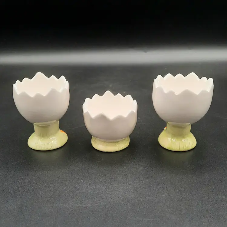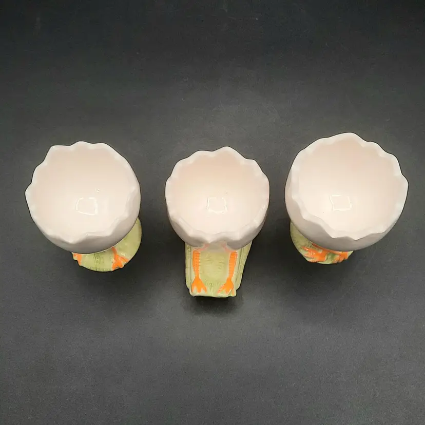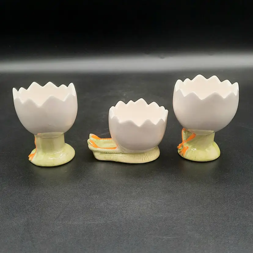 Vintage Egg Cups Broken Egg Shell Chicken Legs Easter Set of 3 TasteSetter Japan