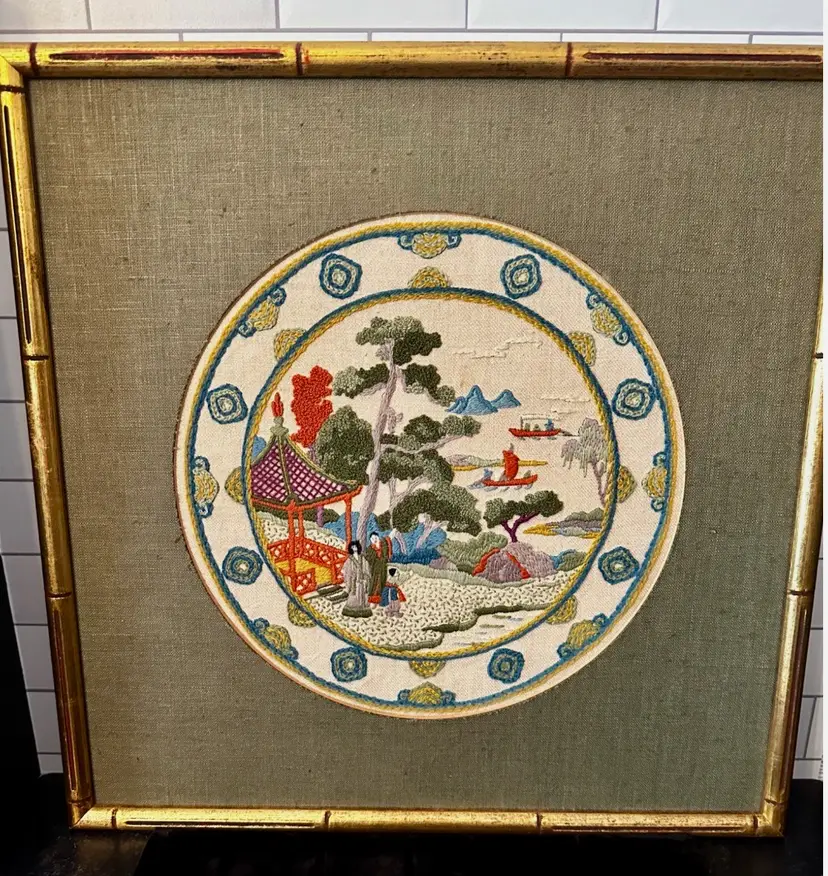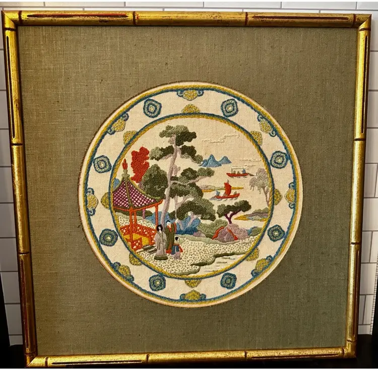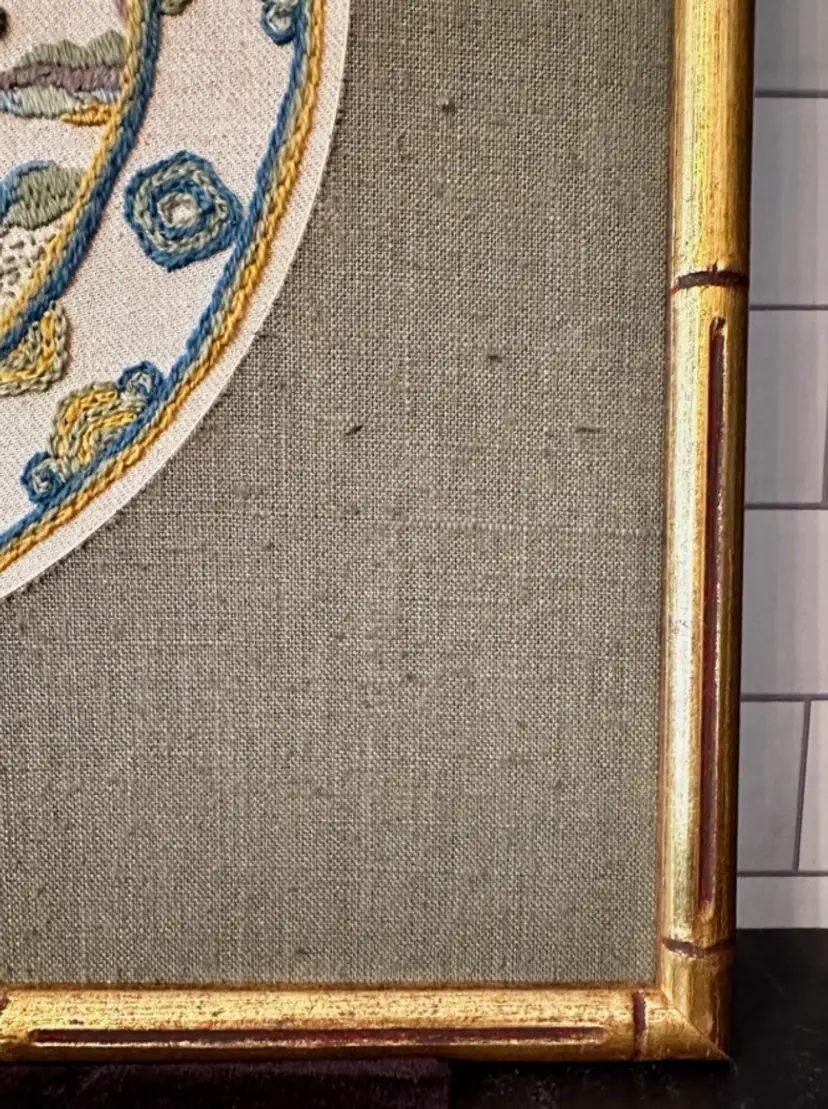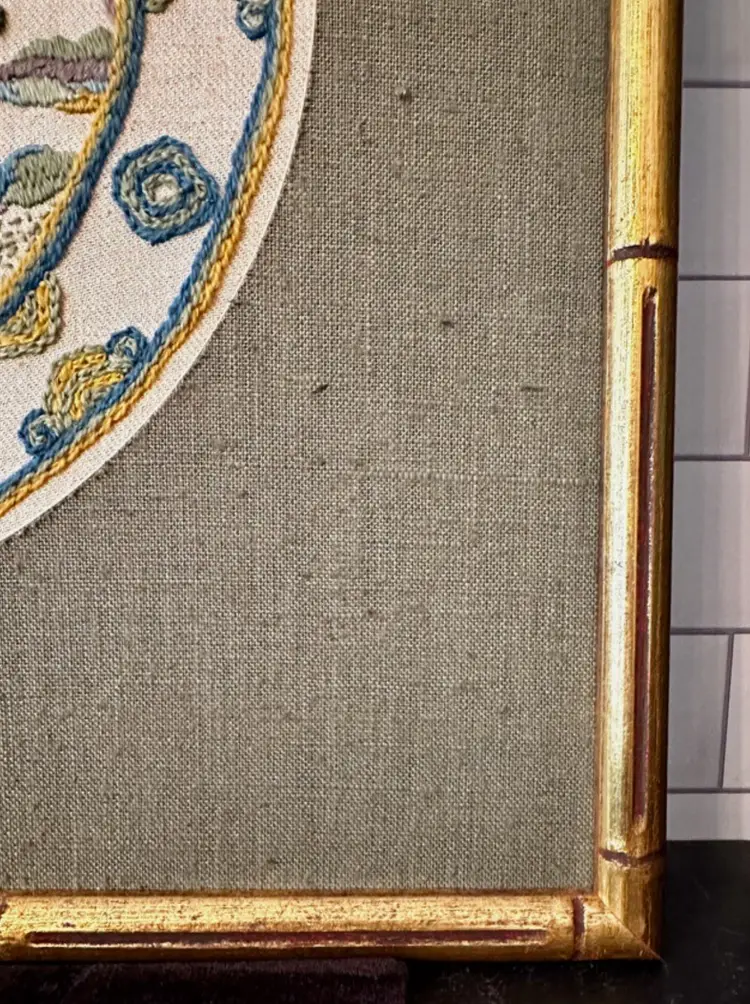 Good condition. Beautiful craftsmanship and nicely matted and framed. One small stain shown in photos. Artwork measures 12" x 12" and is nicely framed and measures 19”x 19” x 3/4” and weighs 2.4 lbs