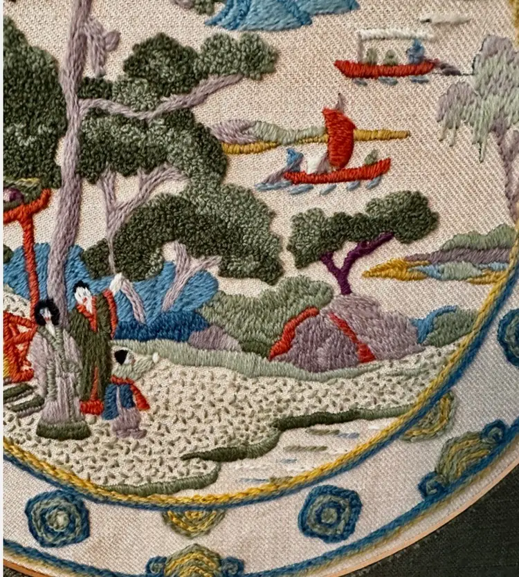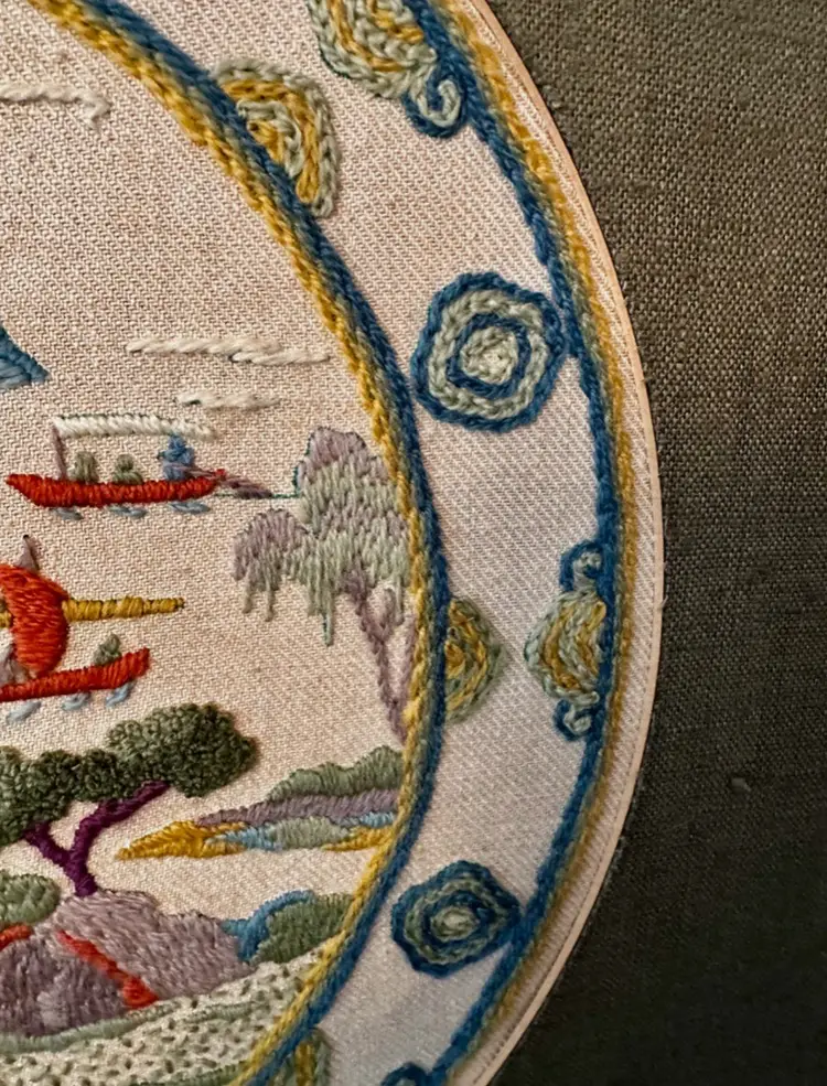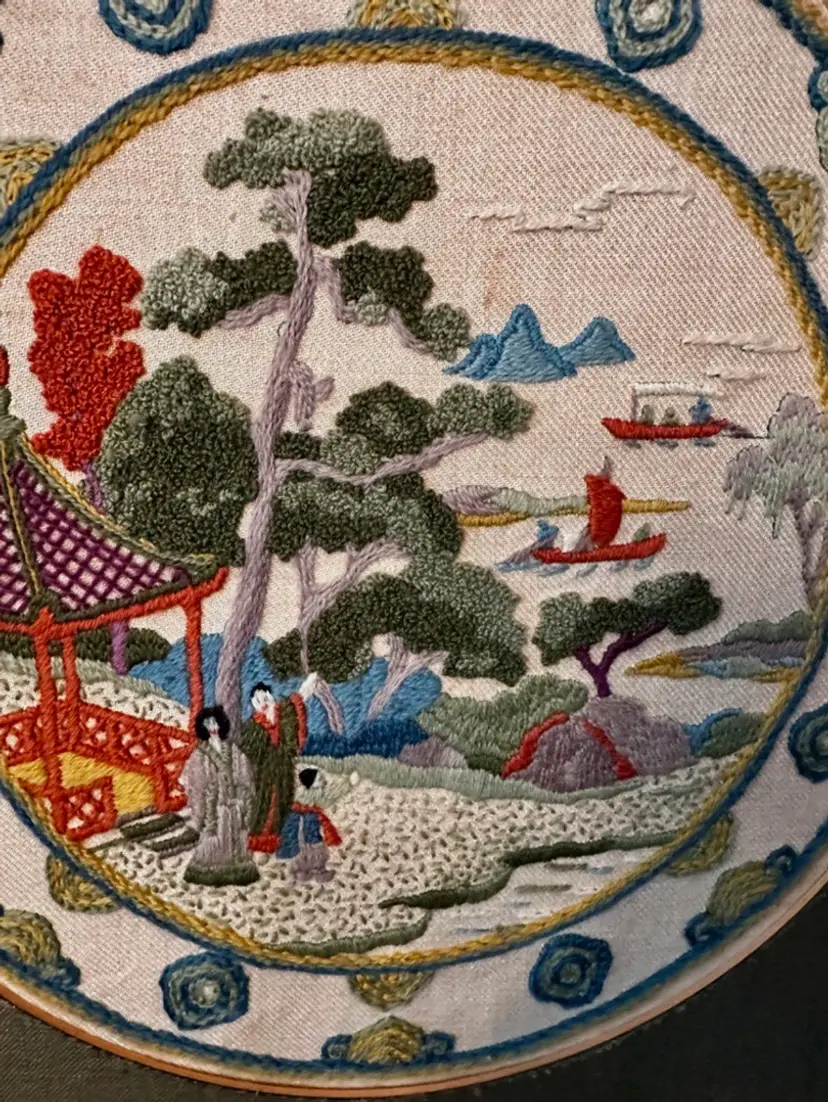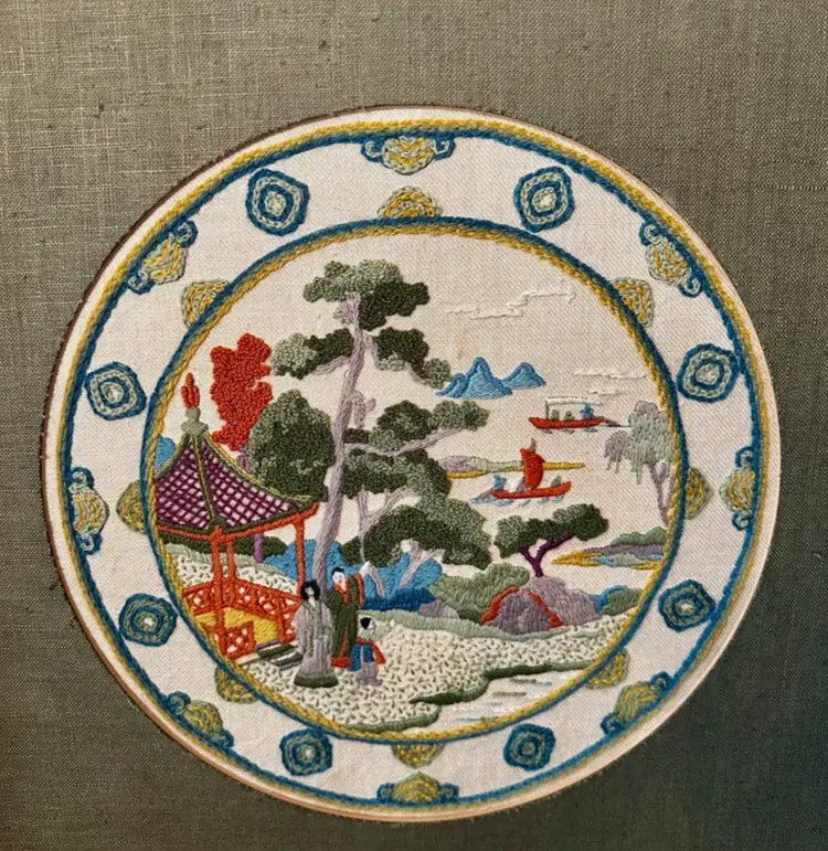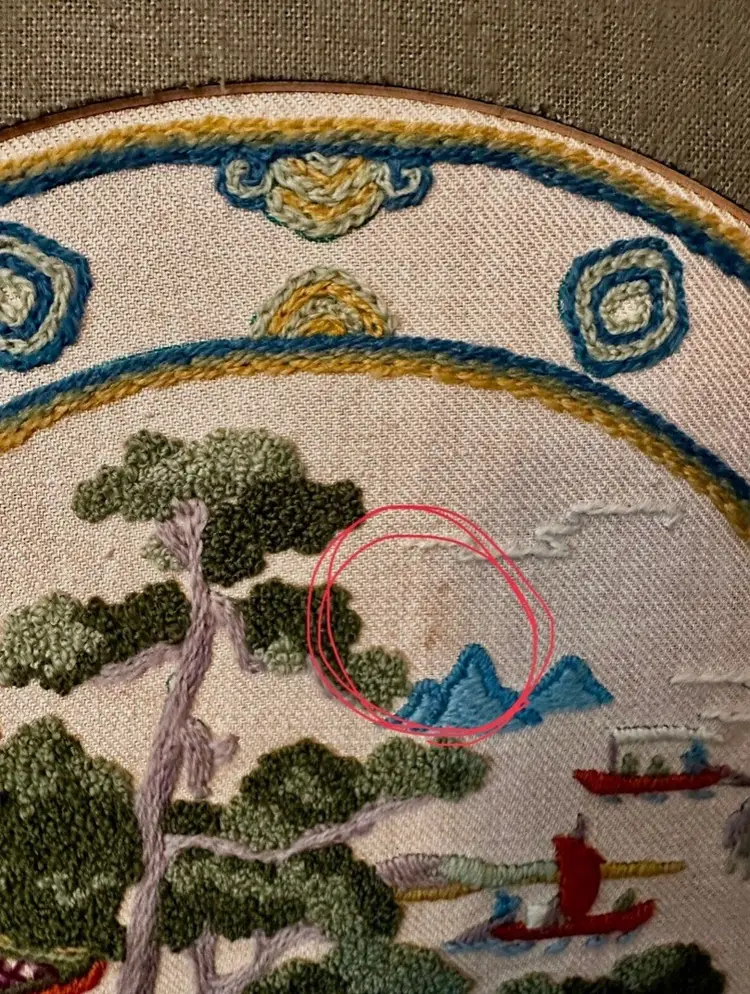 Good condition. Beautiful craftsmanship and nicely matted and framed. One small stain shown in photos. Artwork measures 12" x 12" and is nicely framed and measures 19”x 19” x 3/4” and weighs 2.4 lbs