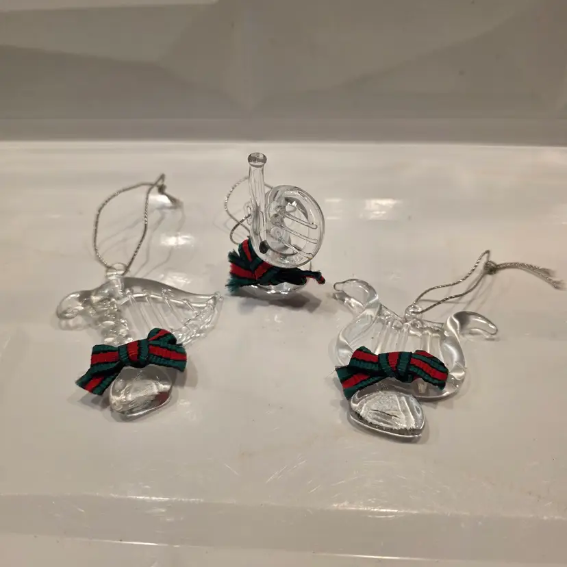 Vintage Enesco 1983 Glass Hand Blown Christmas Tree Ornaments Set Of 3 Musical Instruments