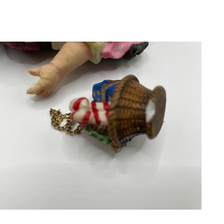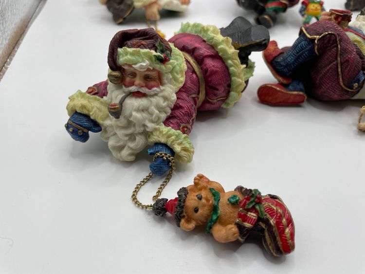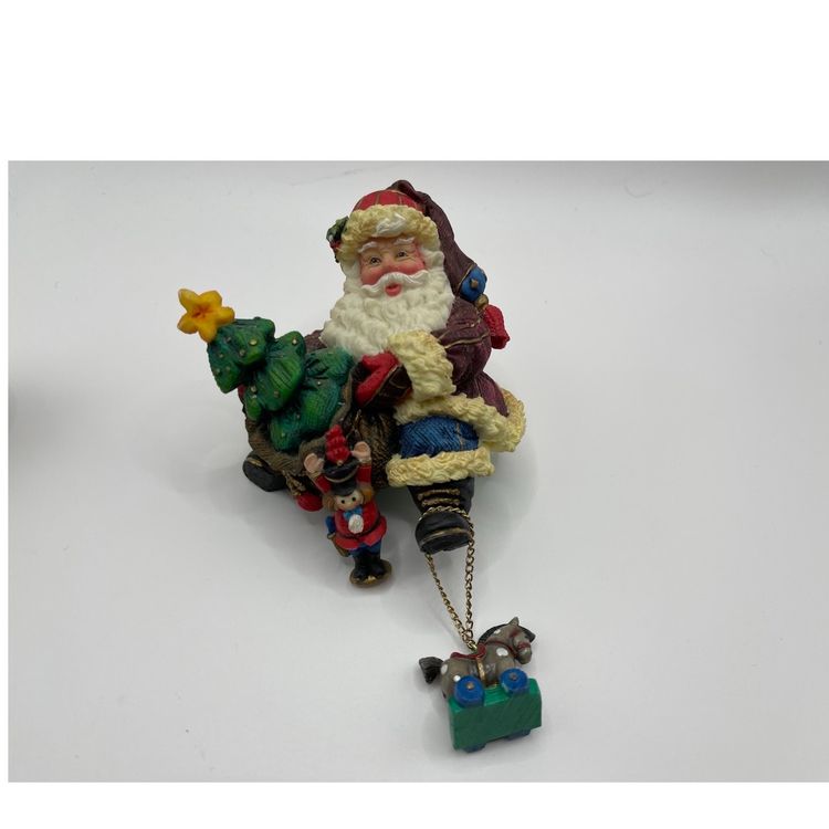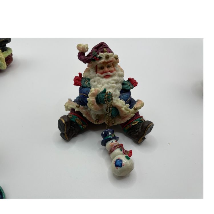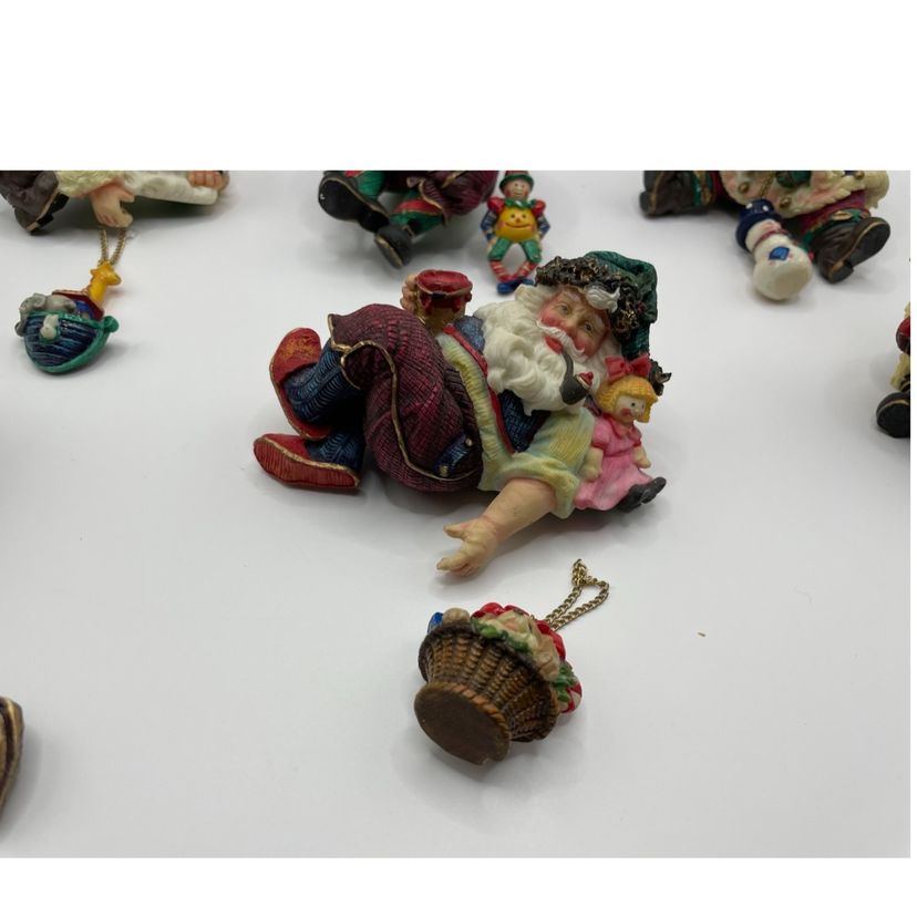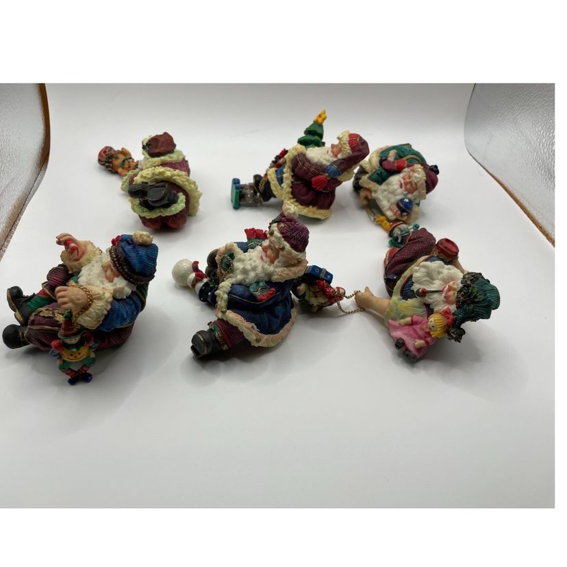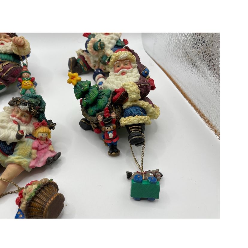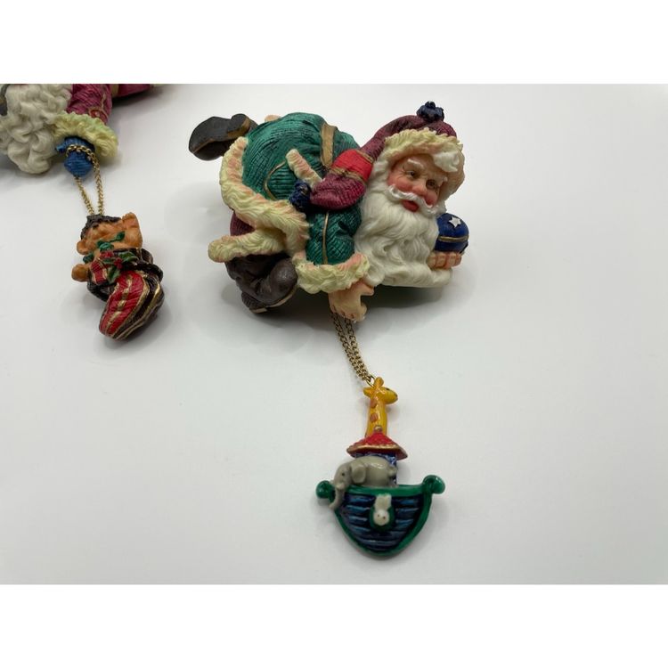 Each Santa has a charm dangling from a chain. The Santa with the puppy in the basket has a loose chain & the back of the basket has a chip. The other chains are still attached. Please review pictures closely, and msg me with any questions. Check out my other listings for more unique vintage items. Thanks for looking!
