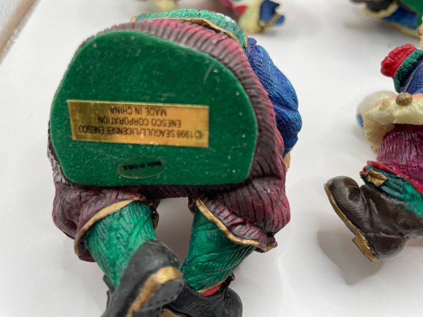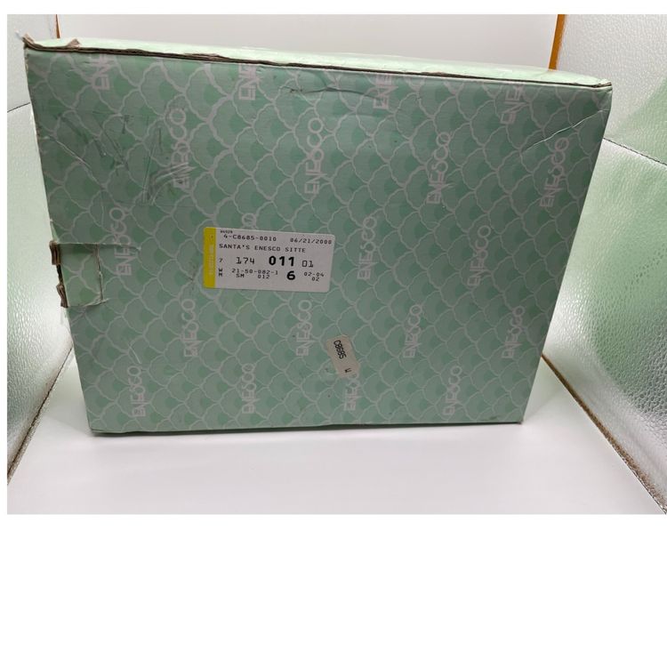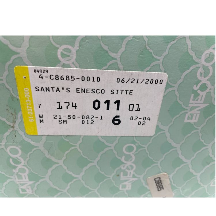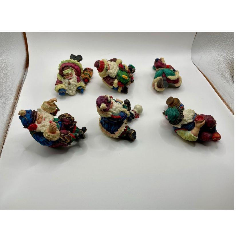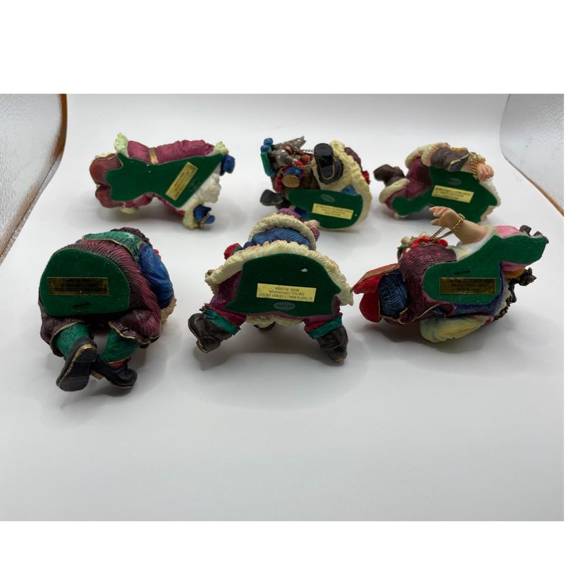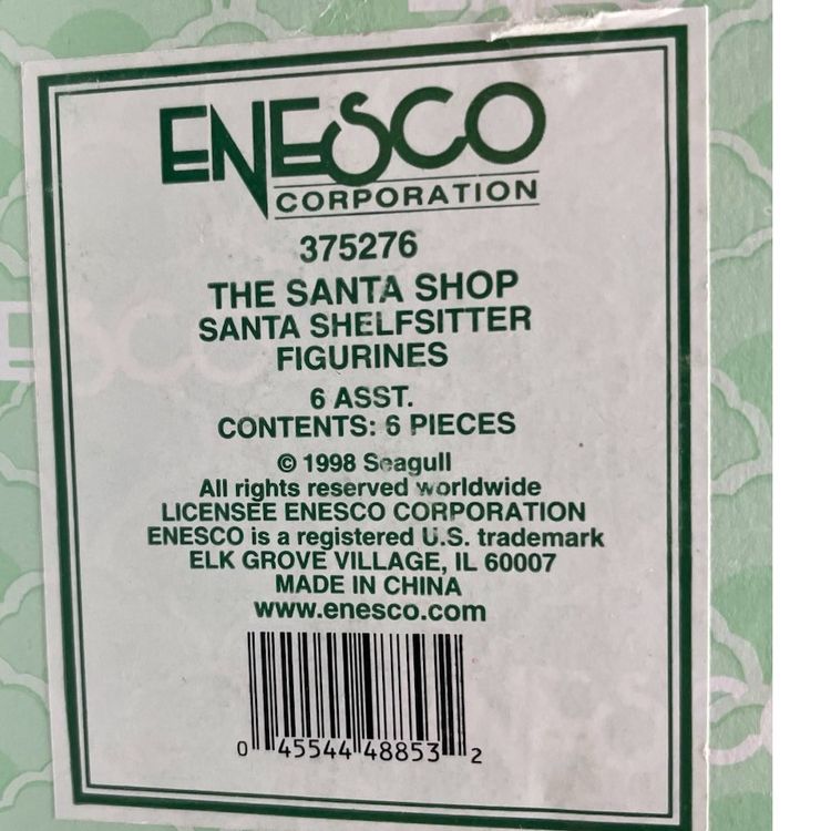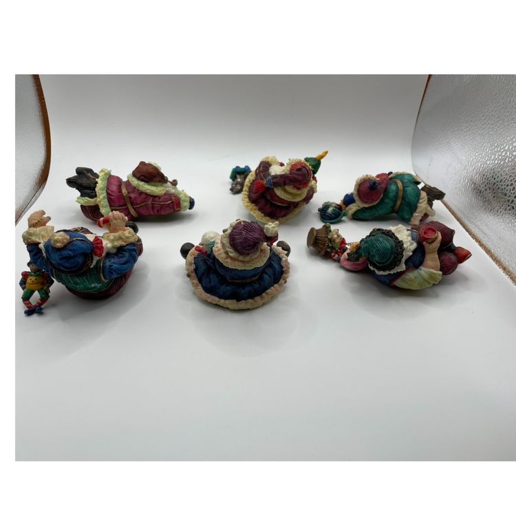 This Vintage Enesco Santa Shelf Sitters Set of 6 Christmas Figurines is a charming collection featuring small, whimsical Santa Claus figurines. Manufactured in 1998, these painted resin figurines showcase a 3D effect and are designed as shelf sitters. The Americana style figurines come in a multicolor pattern, making them a festive addition to any Christmas decor. Each figurine is between 2-5 inches in length, height, and width, making them perfect for teens and adults to enjoy during the holiday season. The Enesco brand ensures quality and authenticity in this seasonal collection.