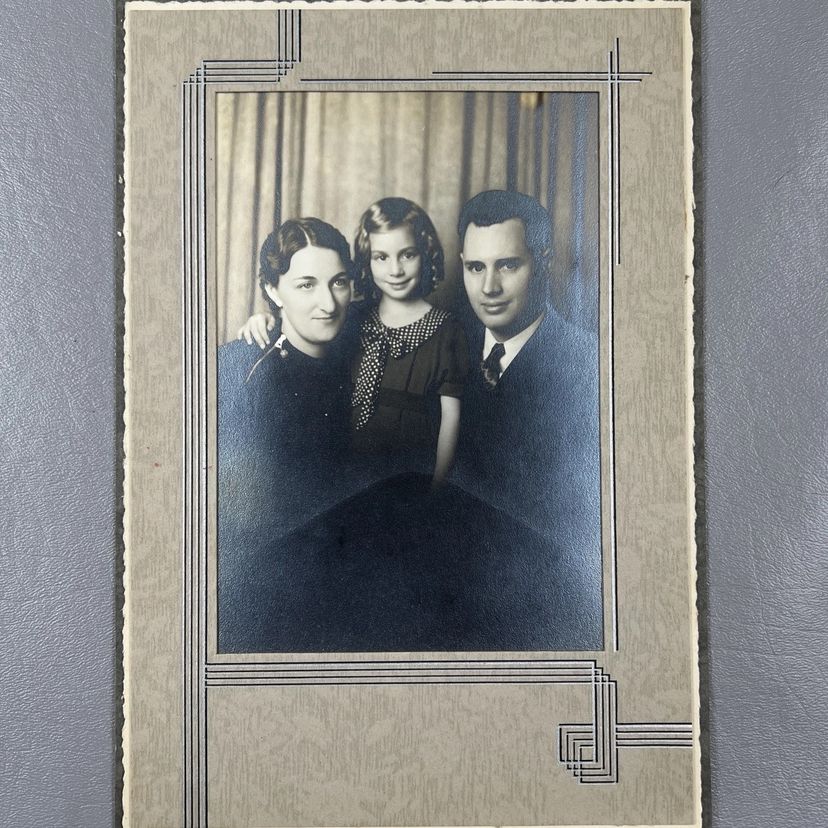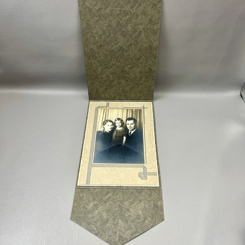 Vintage Family Portrait Photo Beautiful Girl Curls Mother Father Suit Silvering 7x10" With Cardboard Frame
