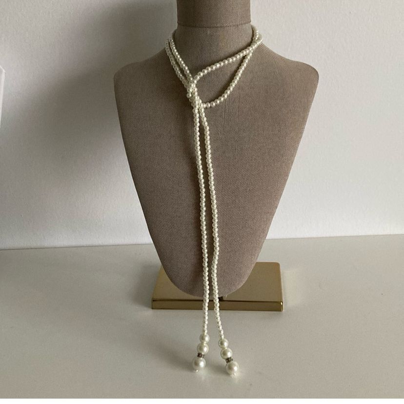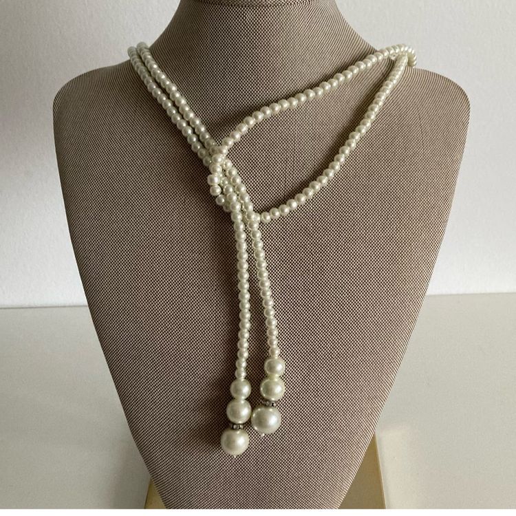 Vintage faux pear lariat necklace. Lariat necklaces can be styled and worn in many different configurations. Length measures 52” long.