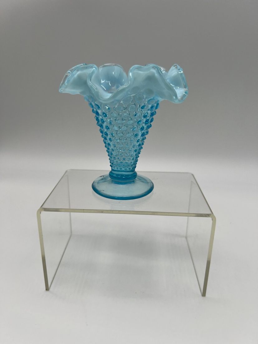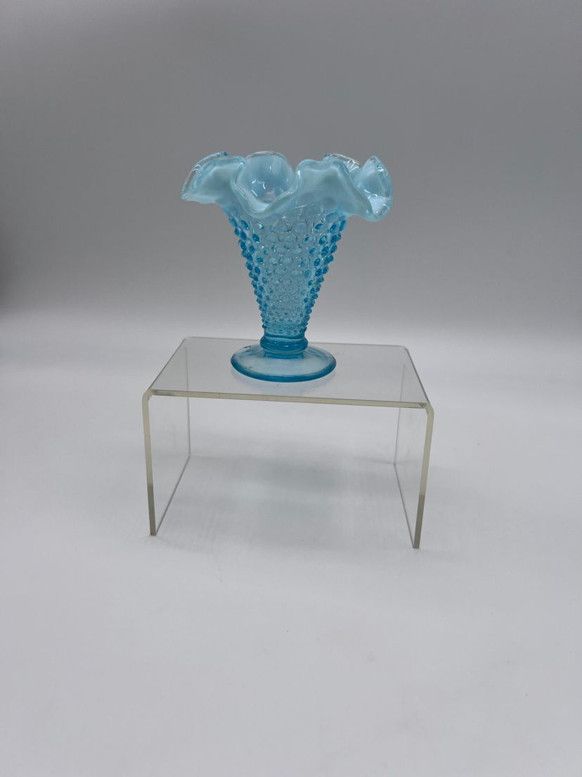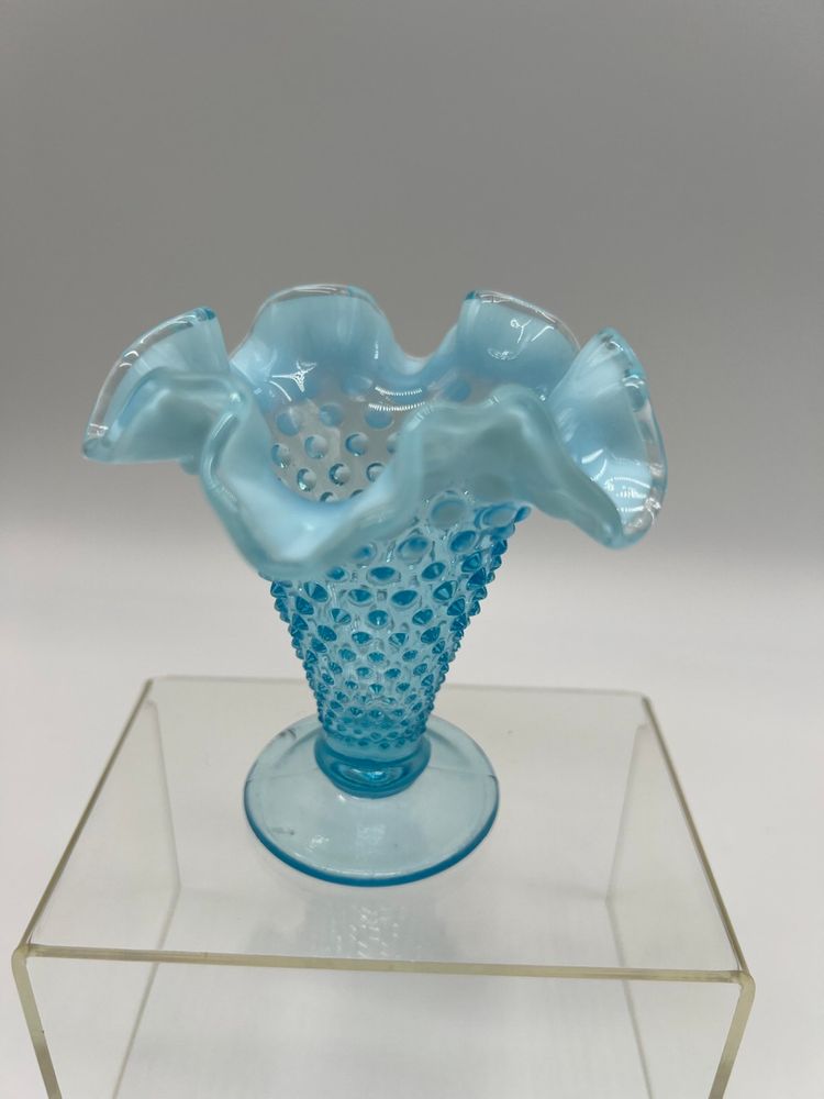 In excellent vintage condition, this vase does have small chip on the underside of base. Please see pictures. Whether you are a collector of vintage glass or looking for a unique piece to enhance your home, this Fenton hobnail trumpet vase is a delightful find that embodies charm and elegance. Perfect for gifting or adding to your own collection!