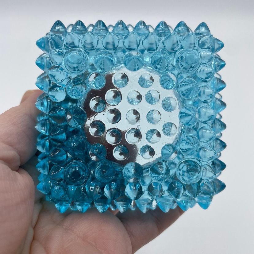 3 inches. Rough spot on one of the knobs on top. I can’t tell if it’s a chip. You can’t see it.