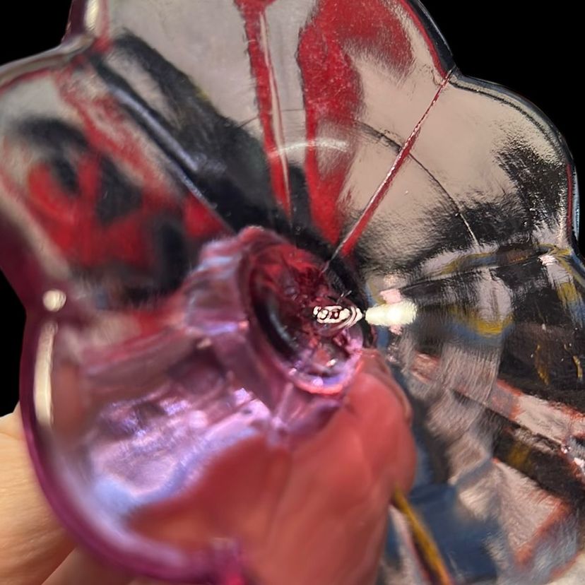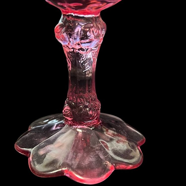 Vintage Fenton Glass Cabbage Rose pink pedestal compote dish. 6.5” Stamped
