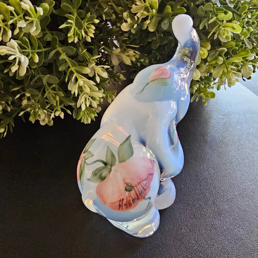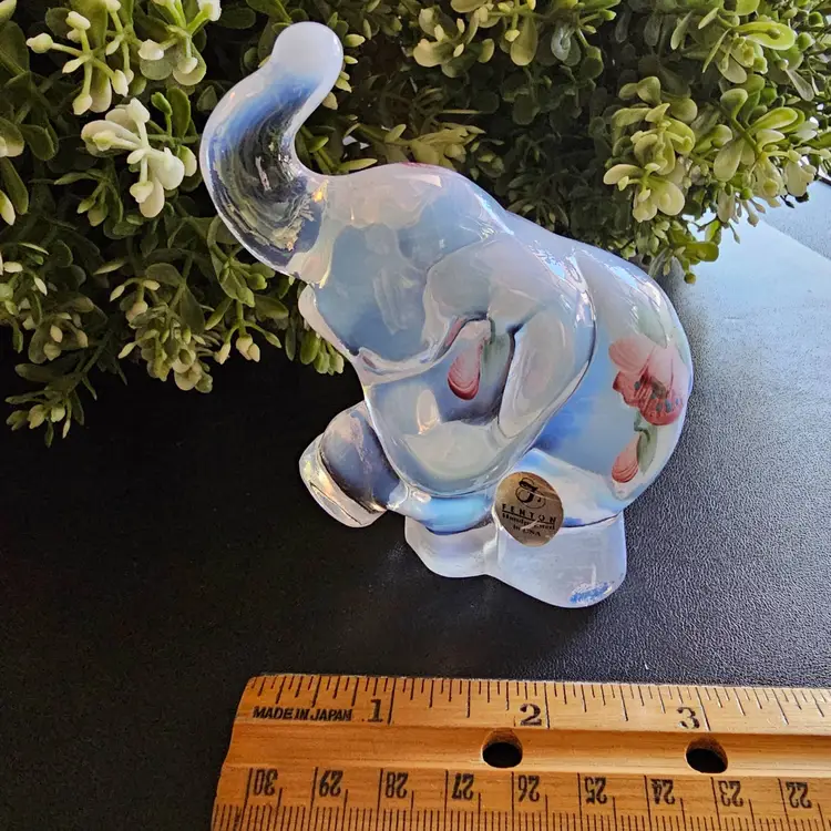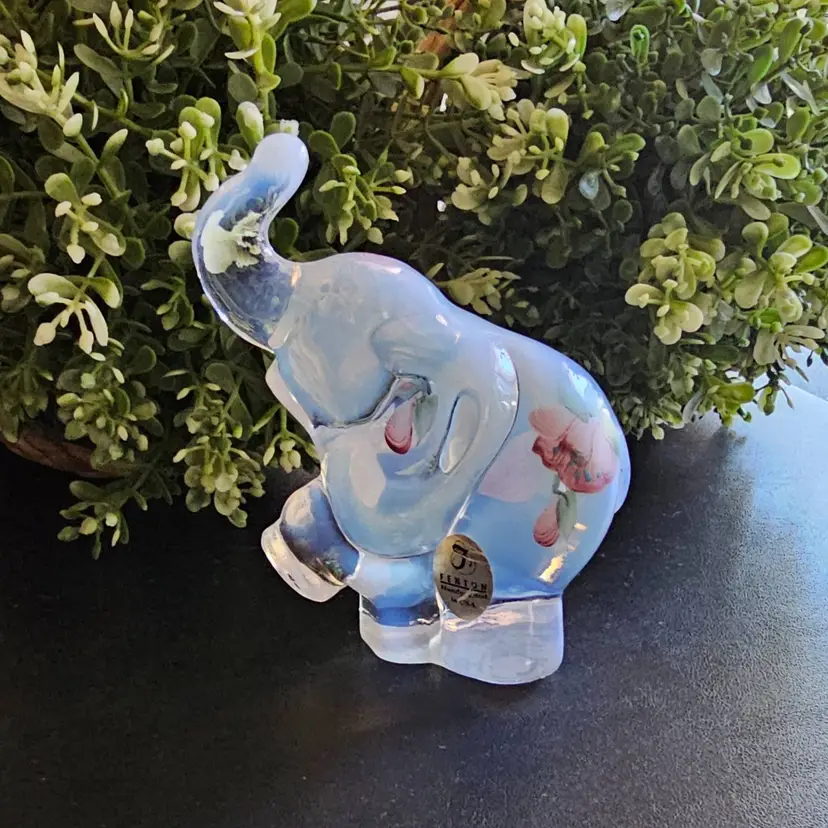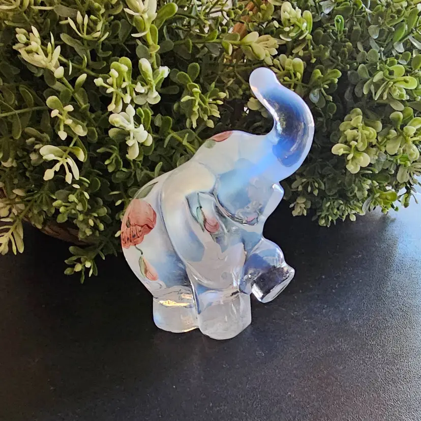 An elephant's trunk up is a symbol of good luck and positive energy. Measures about 3-1/2" x 2" x 4".