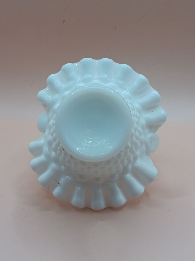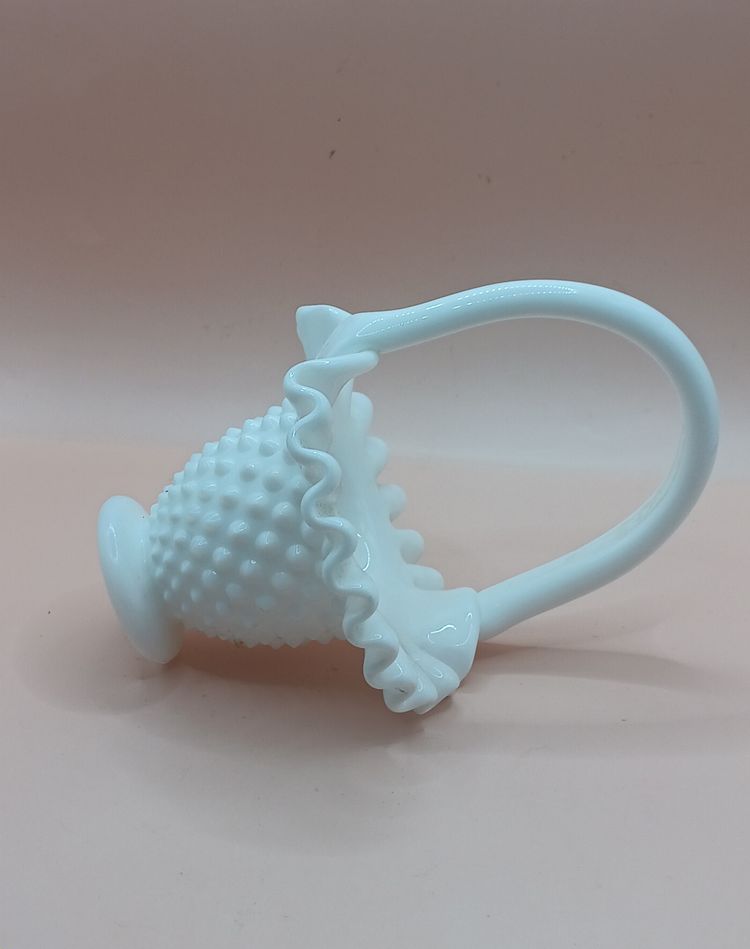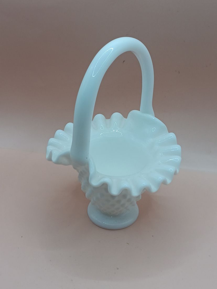 Vintage Fenton White Milk Glass Hobnail Basket 6"