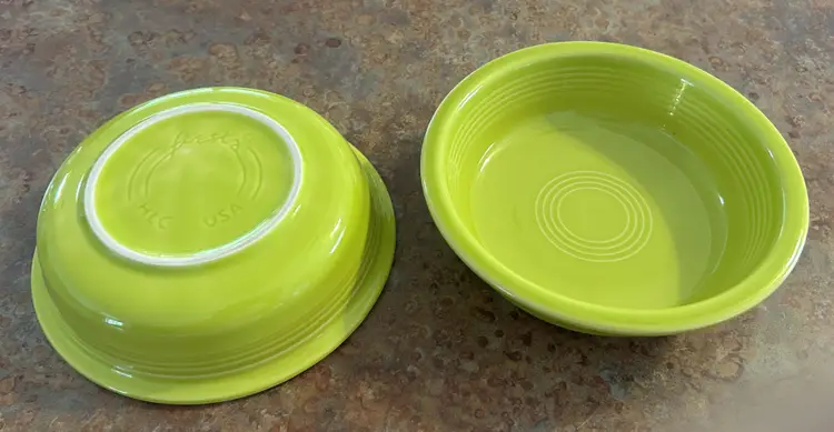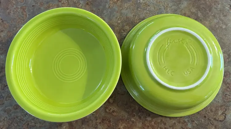 Two Vintage Homer Laughlin Fiestaware Bowls Green/Lemongrass/Chartruse Approximately 7" Round Approximately 2" Deep Made in USA
