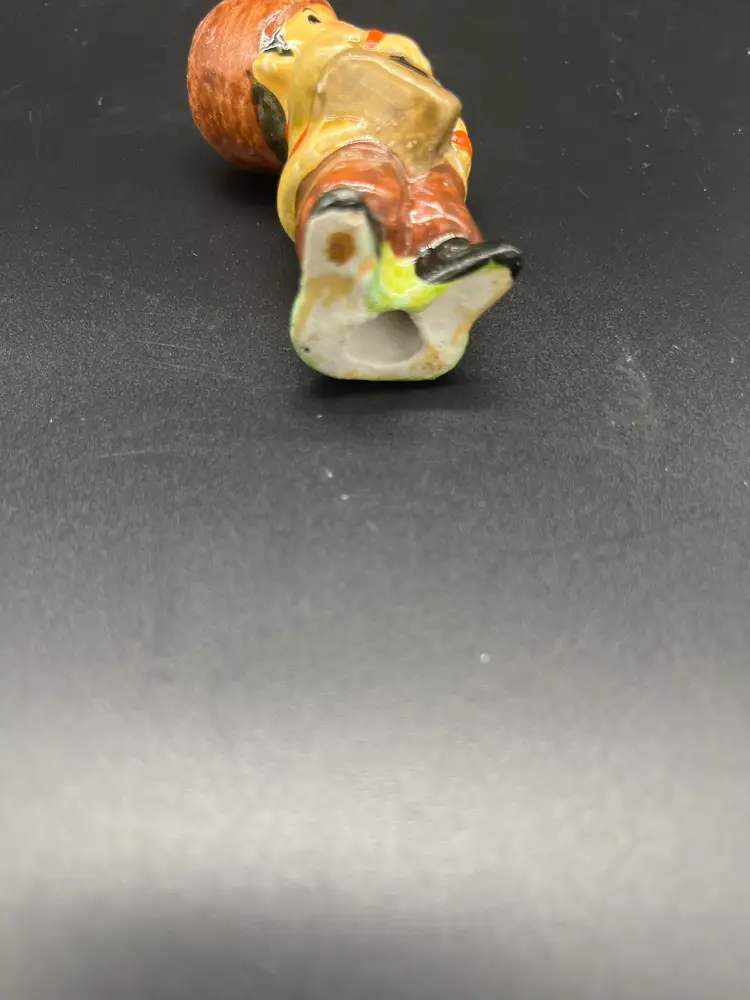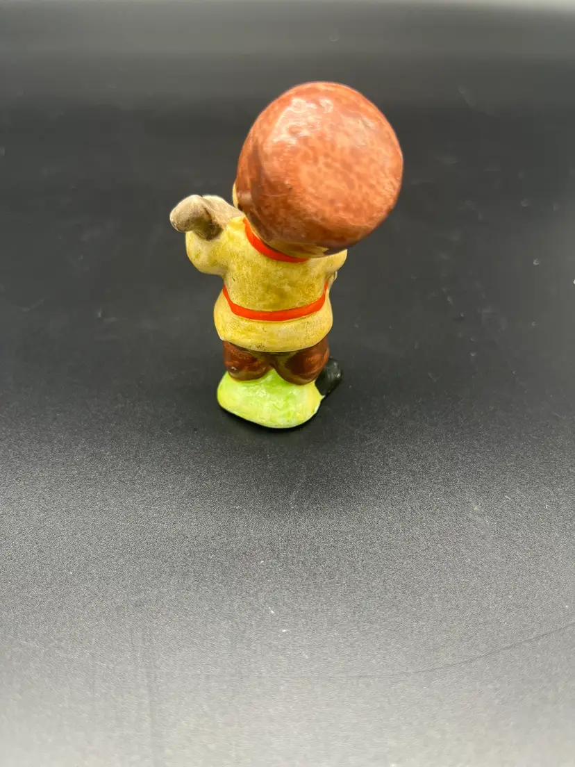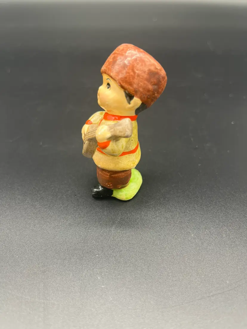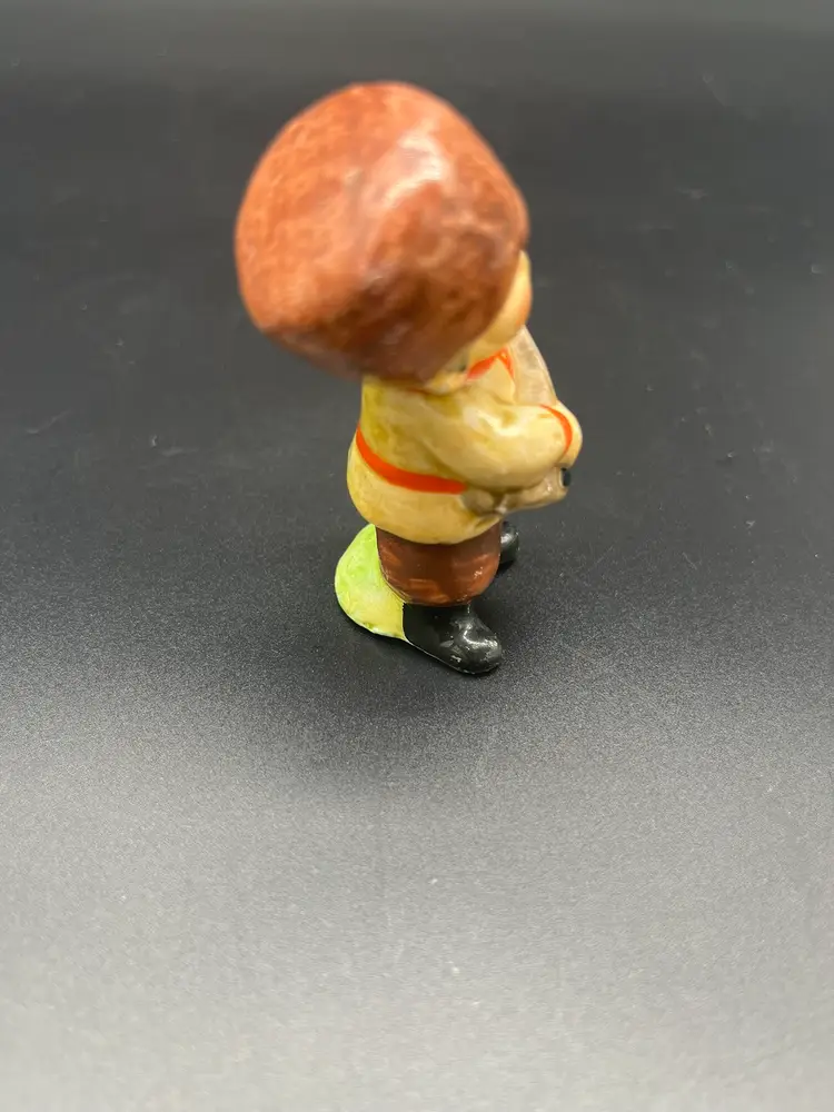 Charming 2.75" figurine features stylized boy in folk-style outfit, strumming a balalaika with joyful flair. Warm tones, oversized eyes and hand-painted details lend a whimsical, storybook quality. Perfect for collectors of Eastern European folk art, musical miniatures or vintage figurines. No maker's mark is visible, but craftsmanship and subject suggest late 20th-century studio or import ware. Good vintage condition, no chips or cracks. 2 3/4" Tall Shipping included.