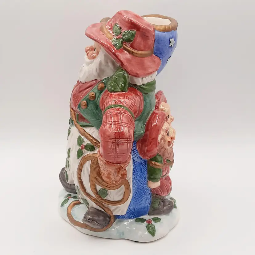 Vintage Fitz and Floyd Omnibus North Pole Rodeo Cowboy Santa Pitcher 1995