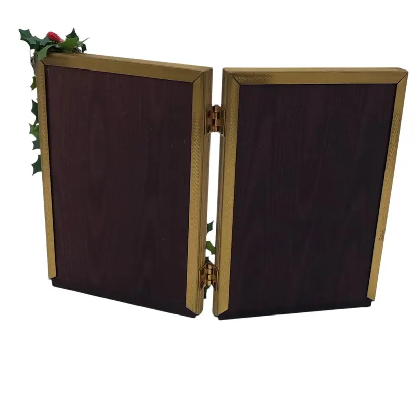 Classic double frame holds two of the cutest vintage cards. They pair perfectly, with gittering highlights and vintage trims. 5 1/4" x 7 1/2"