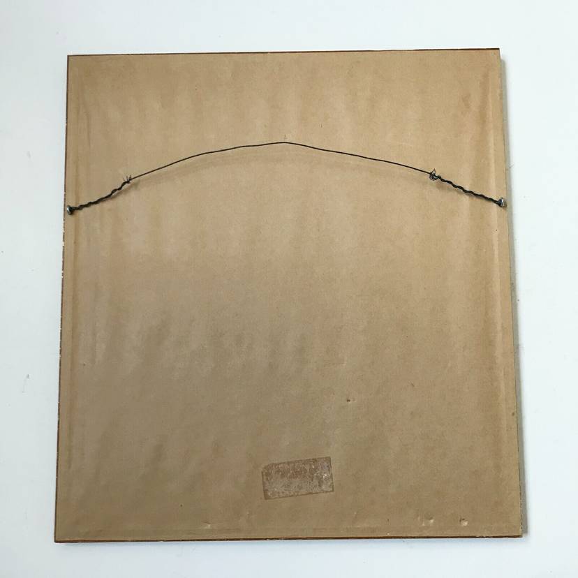Mounted and framed. Includes a wire for hanging.