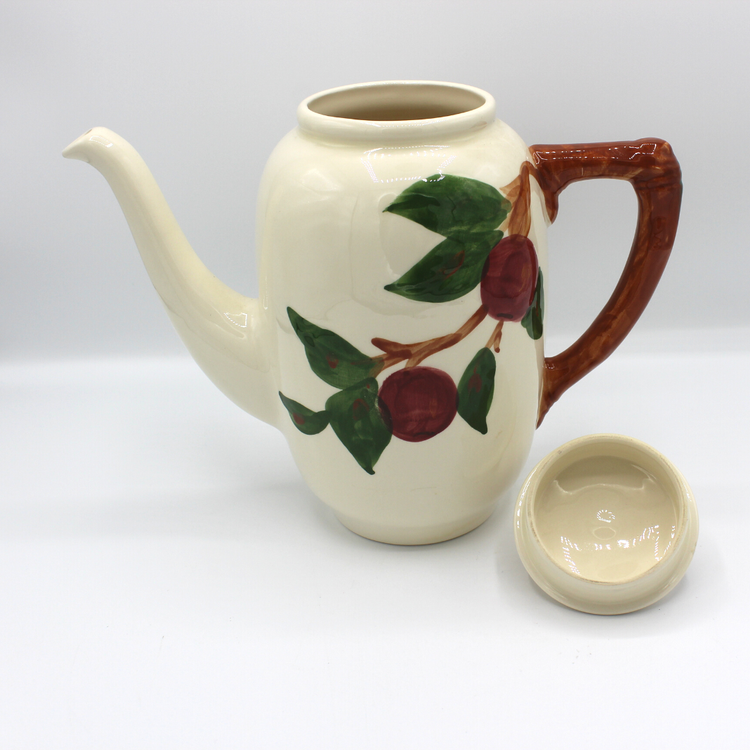 Vintage Franciscan Apple Coffee Pot with Lid – Hand Painted Stoneware, Mid-Century Dinnerware