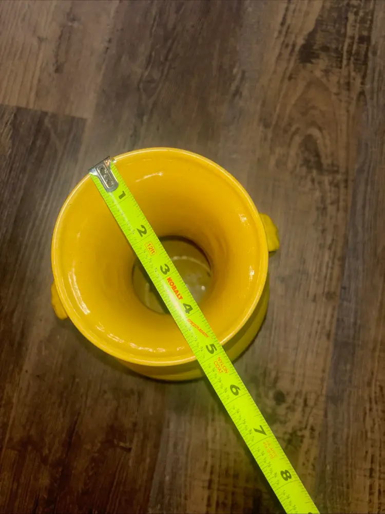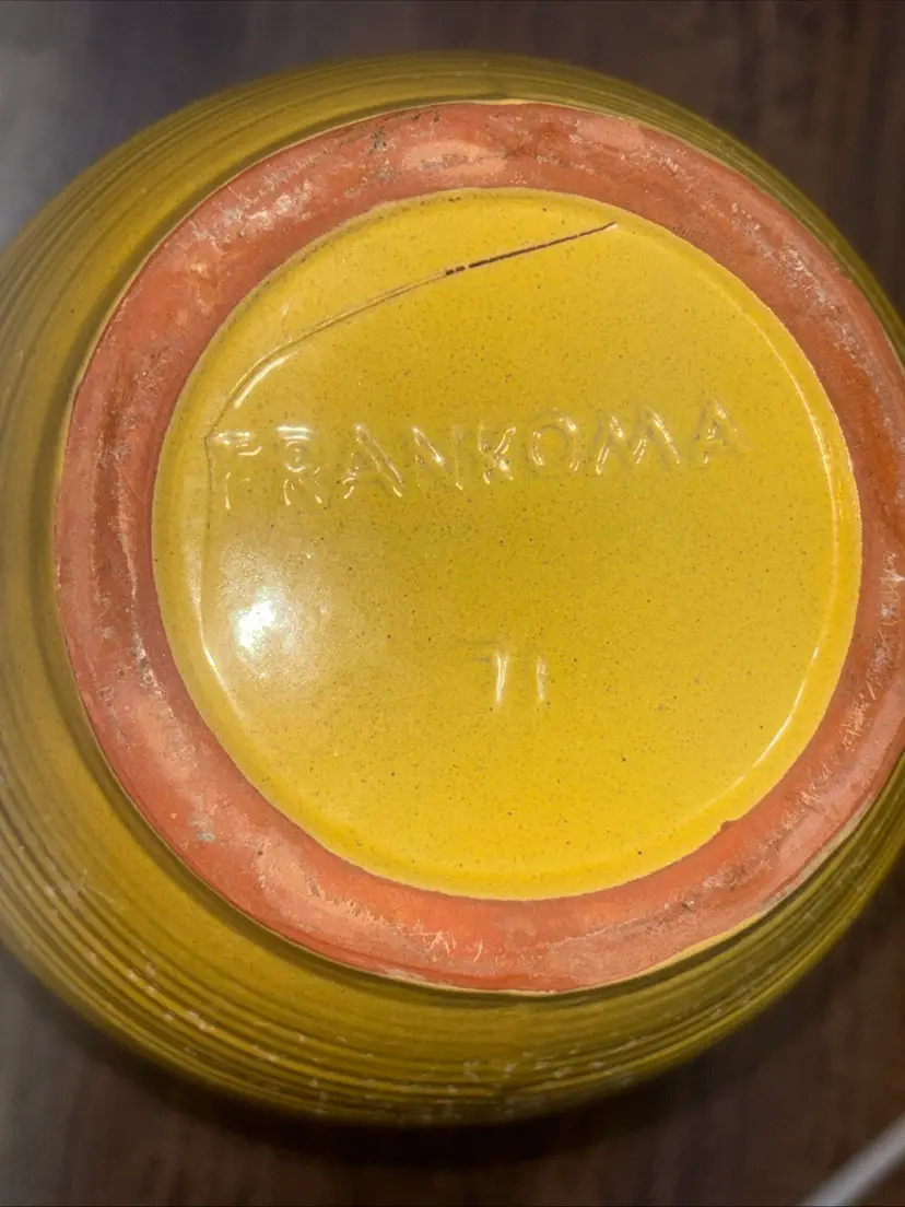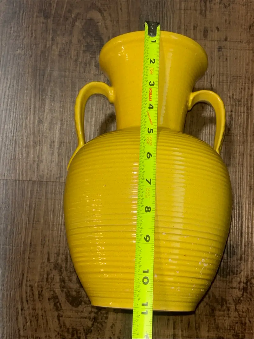 Beautiful double handled leaf design Frankoma fairly large glazed vase. Line on bottom is not a crack, manufacturer blemish *