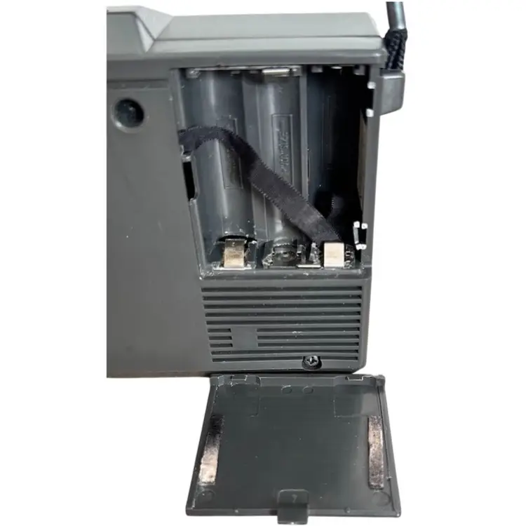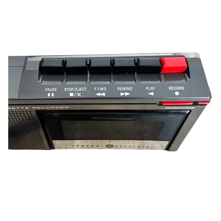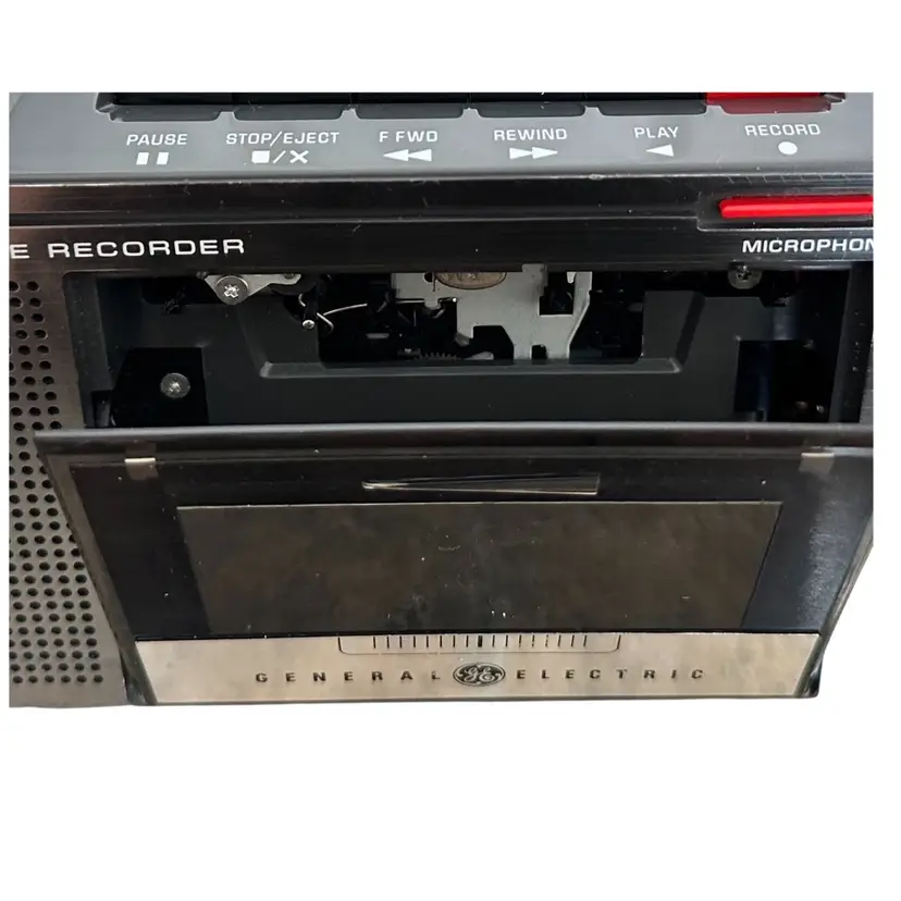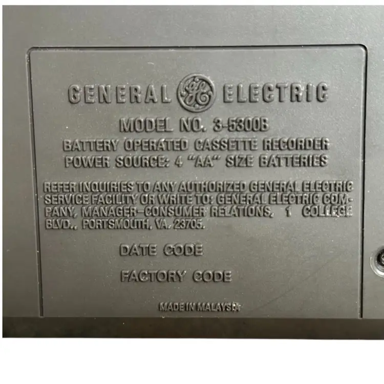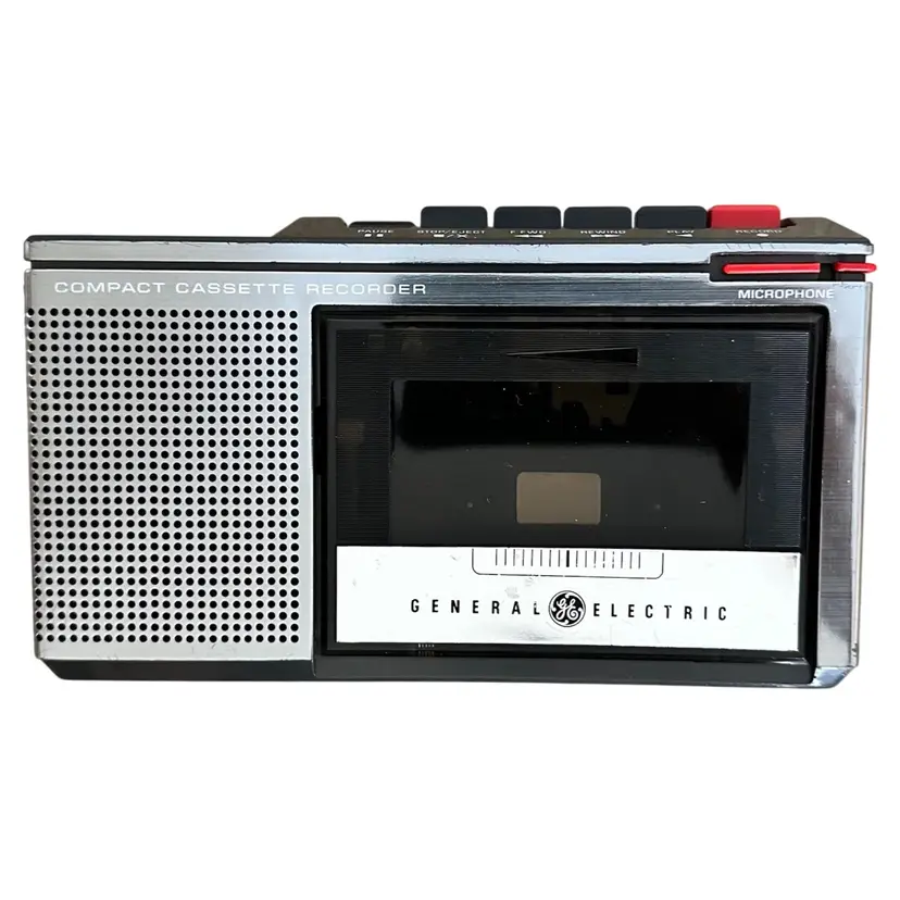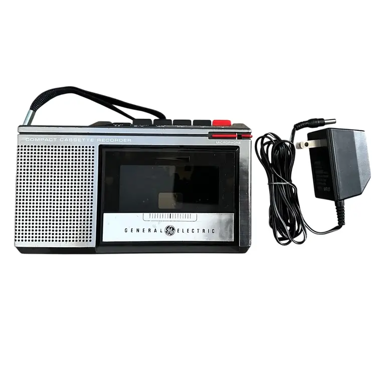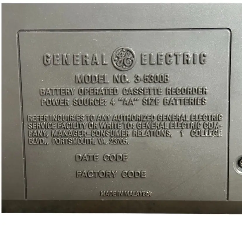 VINTAGE GE GENERAL ELECTRIC 3-5300B Compact Cassette Tape Recorder that’s Tested & Working! Player is Pre-owned and does show signs of wear (see pics for exact condition), comes with OEM power adapter. Battery compartment has slight leftover corrosion from old batteries, but that doesn’t stop it from working either batteries. Back battery cover doesn’t click-in so it may come loose, however it stays as shown per last pic. Ships with USPS.