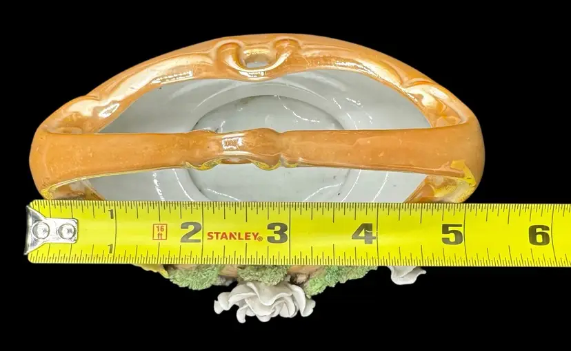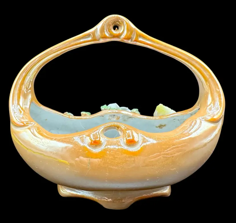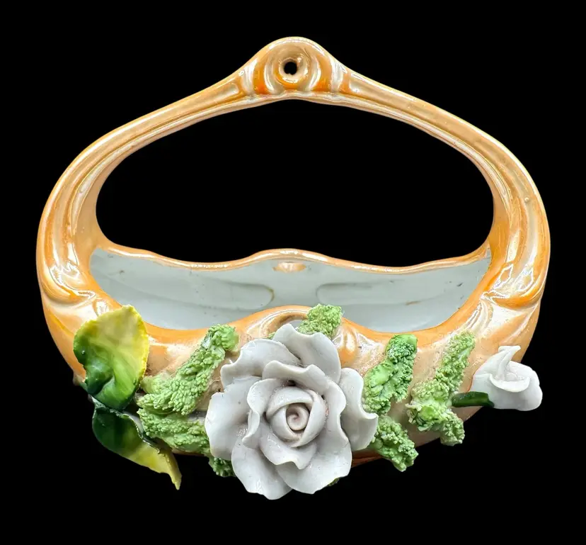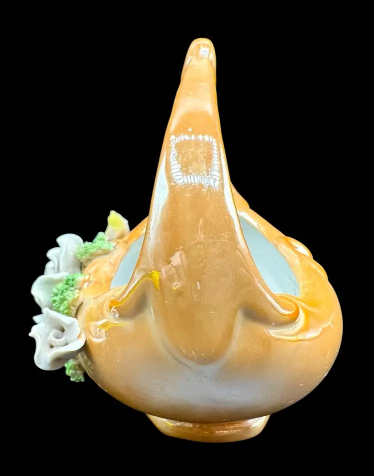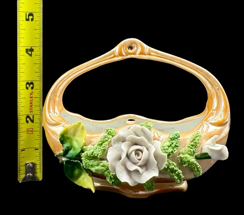 Vintage Germany Elfinware Porcelain Basket Orange Luster White Rose Floral 4.25”