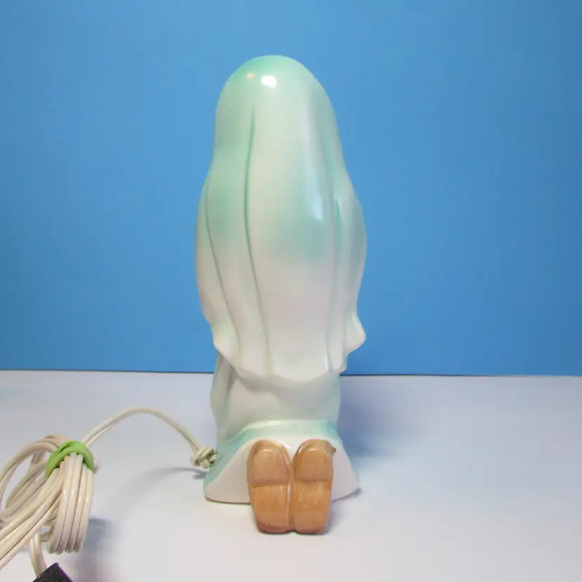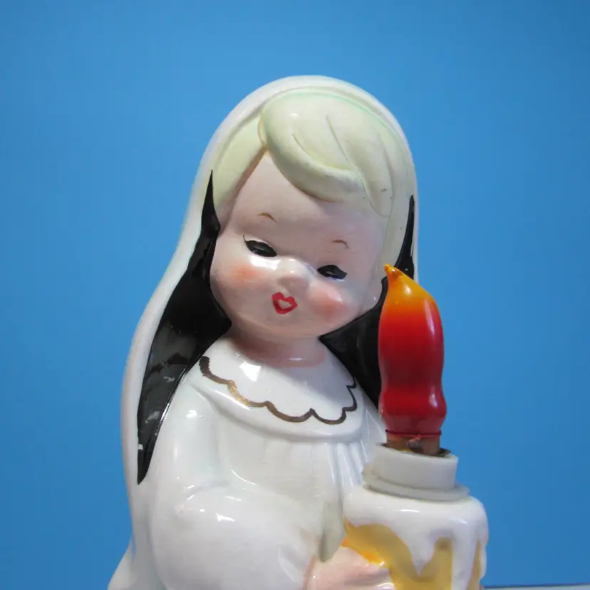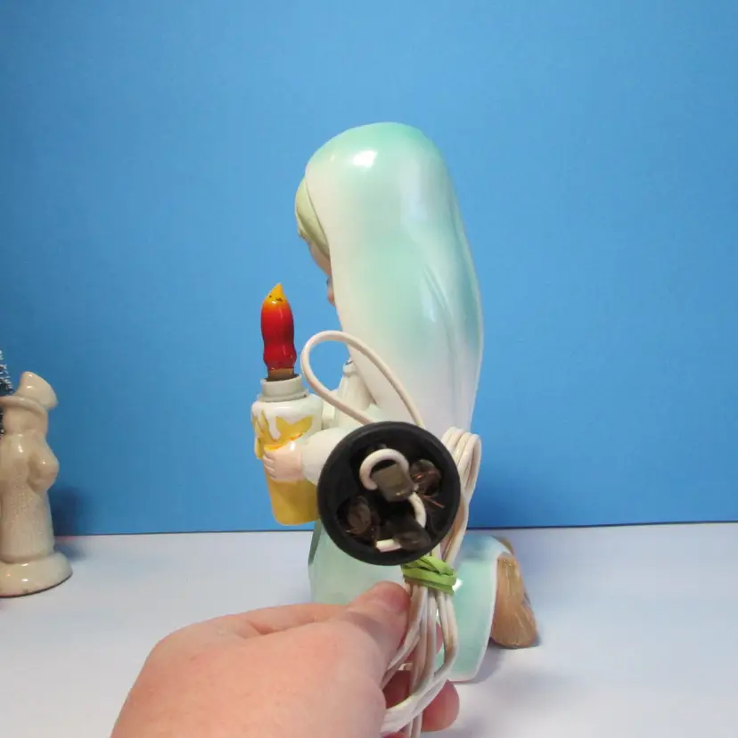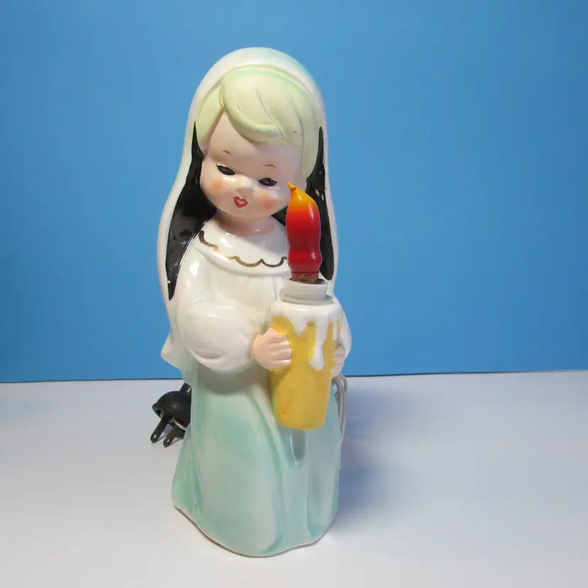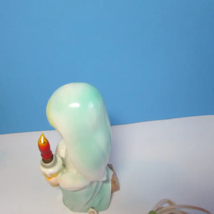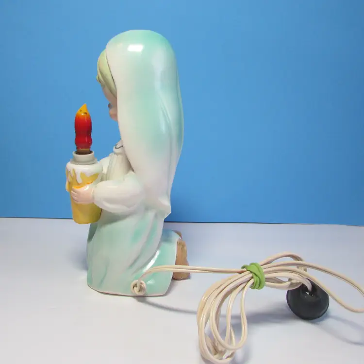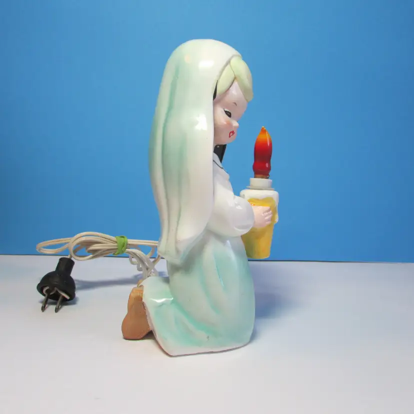 vintage girl kneeling with candle lamp Christmas decor needs to be rewired praying nun