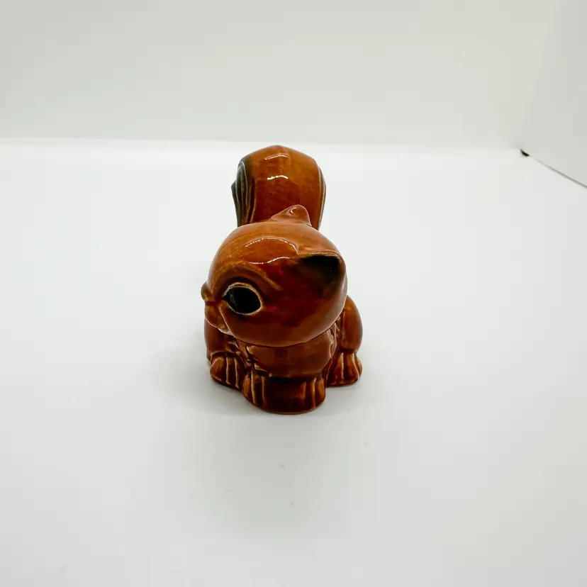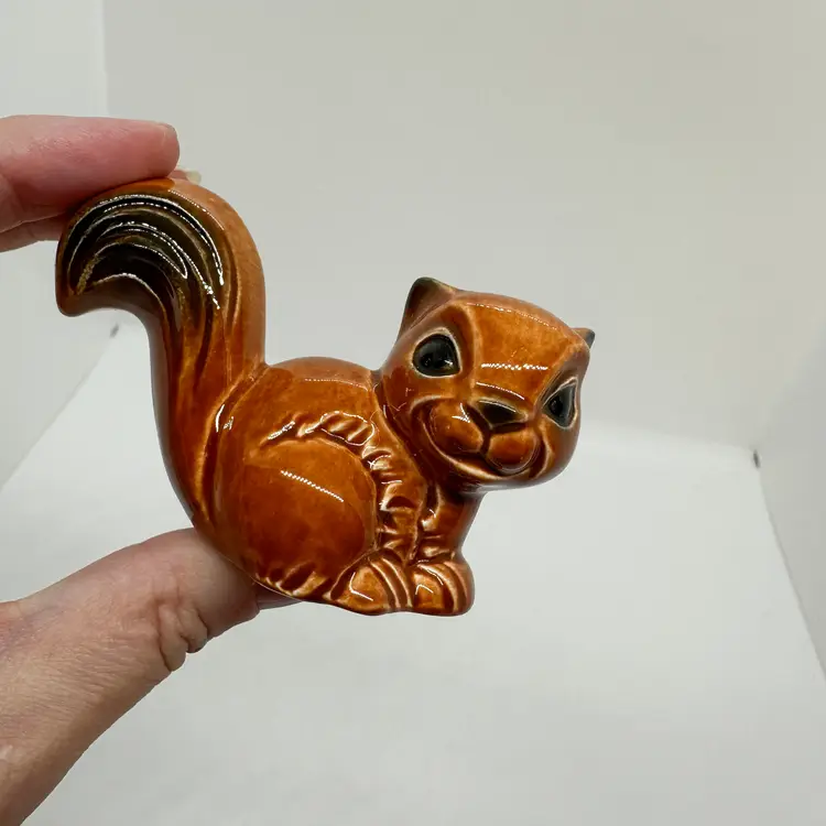 Vintage Goebel West Germany small ceramic squirrel figurine. About 1.5" tall x 3" wide. No chips or cracks, general wear for age.