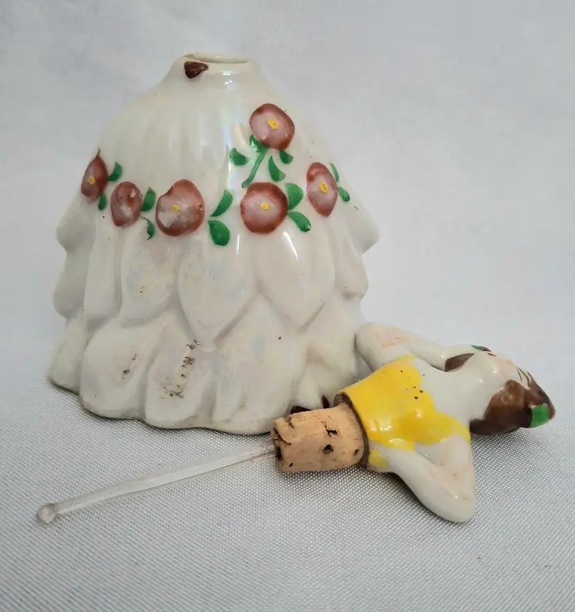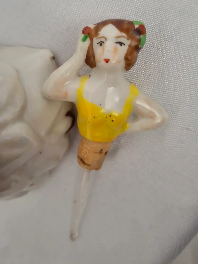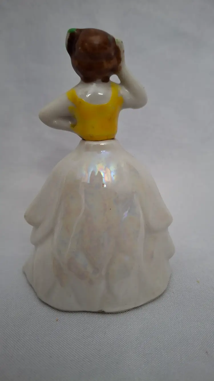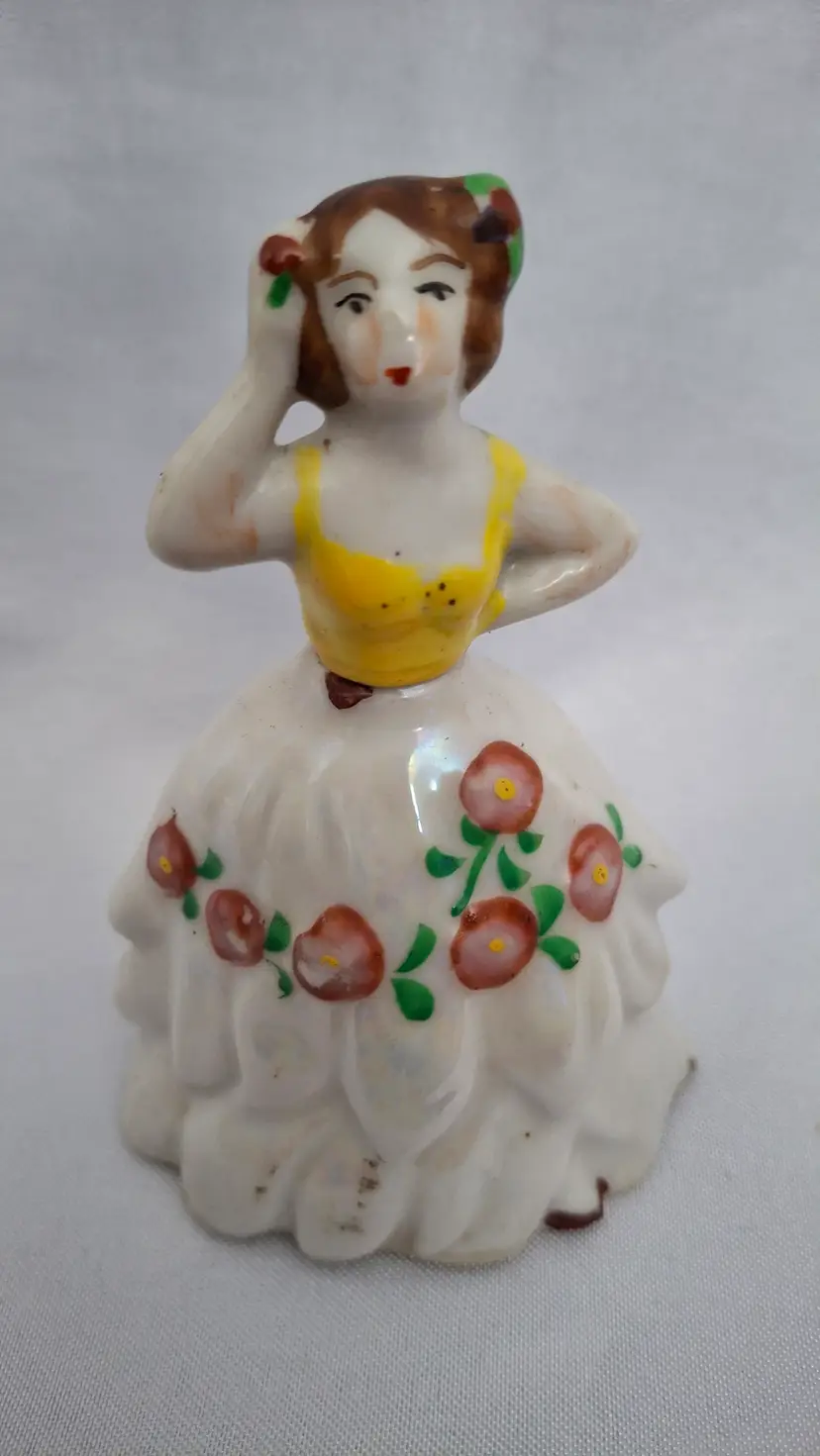 Vintage Gold Castle Chigusa Spanish Dancer Perfume Bottle – Hand-Painted Porcelain, Made in Japan This exquisite vintage Gold Castle perfume bottle captures the grace and charm of a Spanish dancer mid-pose. Standing 3¾ inches tall, she’s crafted from fine porcelain with hand-painted yellow and floral details, showcasing the artistry of mid-century Chigusa Japan. Her original glass dauber remains intact, and while the paint on her face shows slight wear—adding to her vintage authenticity—her dress and overall condition are excellent. This piece bears the Gold Castle mark on the bottom, confirming its Japanese origin and collectible quality. Perfect for vintage vanity displays, perfume bottle collections, or as a delicate accent piece that brings a touch of old-world elegance and joy.