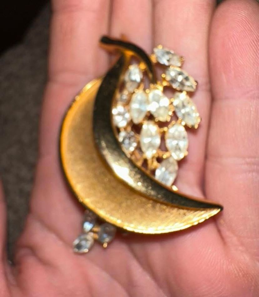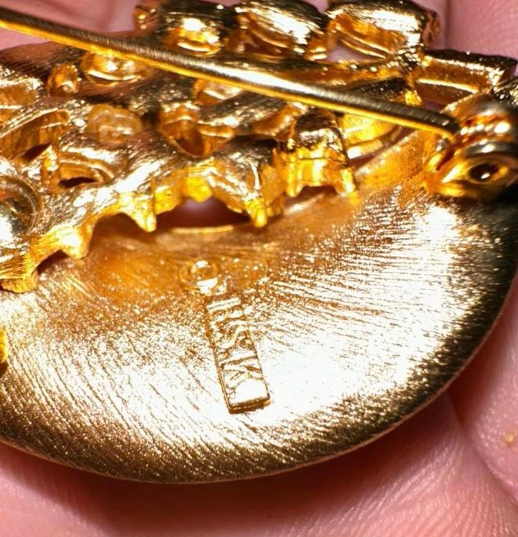 Vintage gold tone BSK signed leaf brooch with clear rhinestone Excellent condition Just over 2 1/4 inch inches in length one and a half inches tall 15 plus shipping