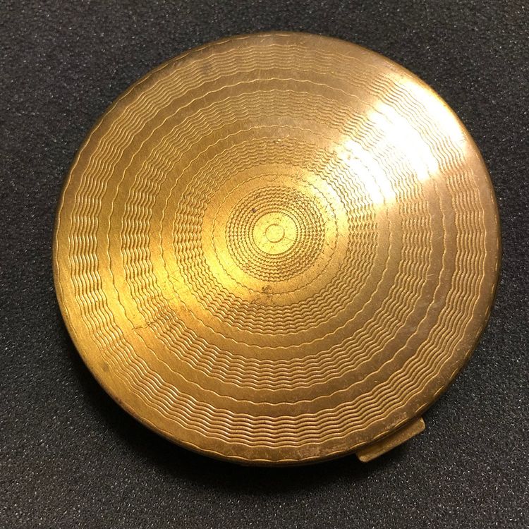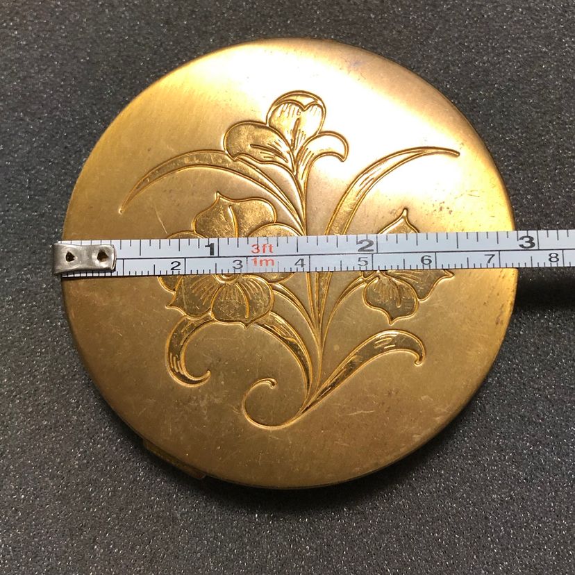 Vintage Gold-Tone Etched Flowers Makeup Compact with Mirror