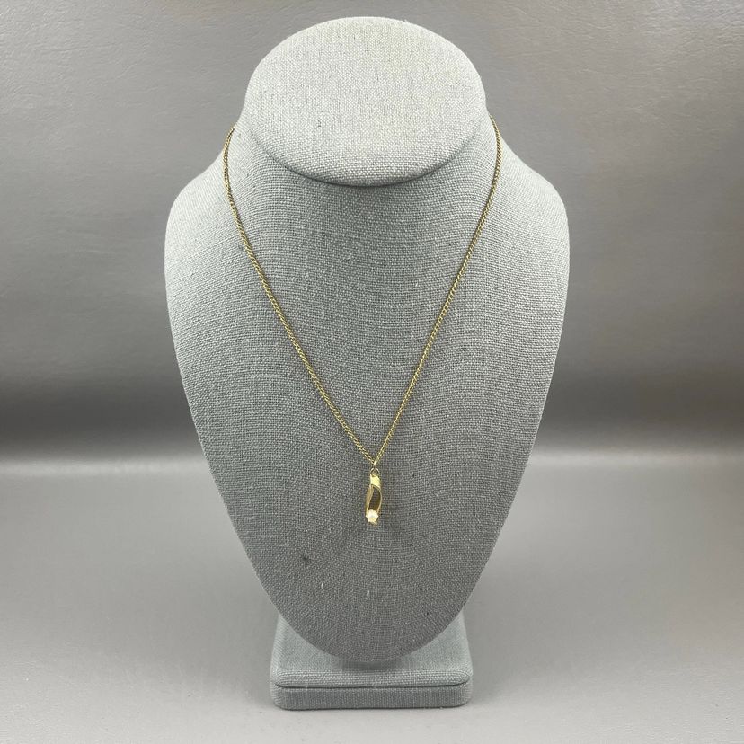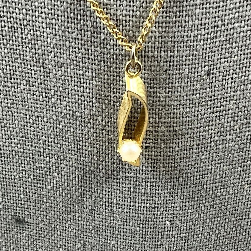 Vintage Gold Tone Faux Pearl 1" Textured Pendant Necklace 16" Chain Chain drop is 8"