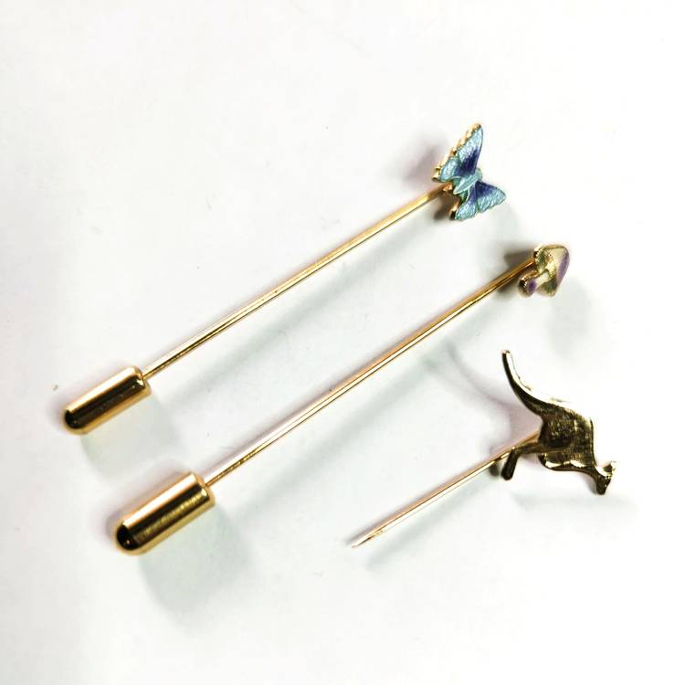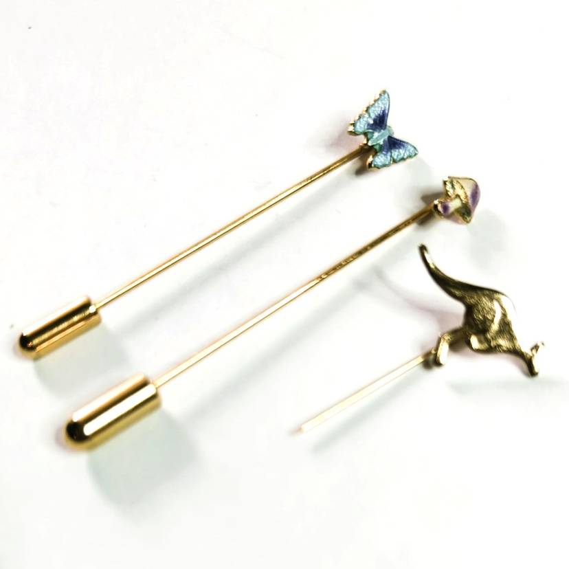 • Set of 3 gold-tone stick pins • Butterfly, heart, and kangaroo designs • Intricate detailing • Secure pin closures