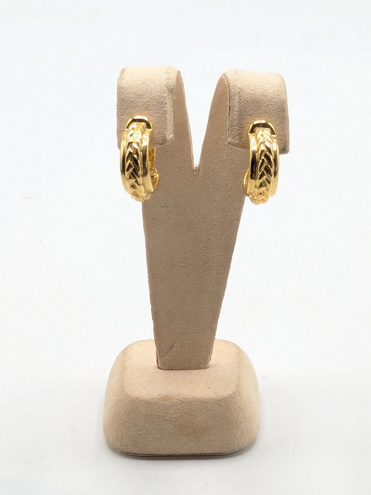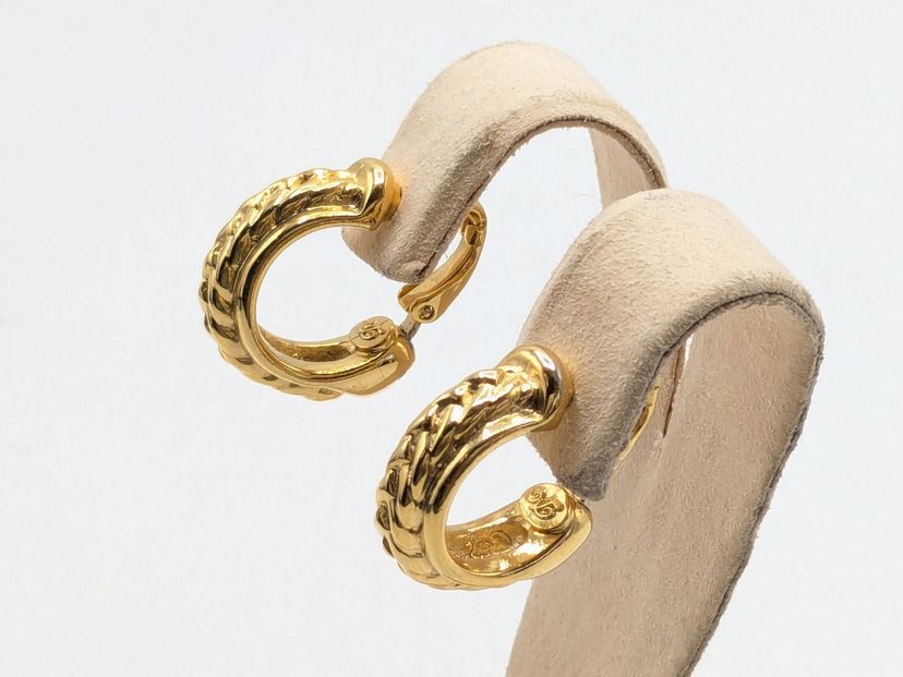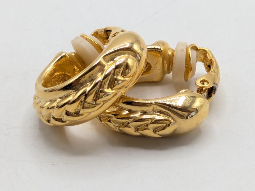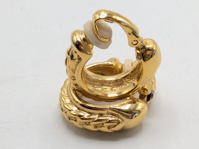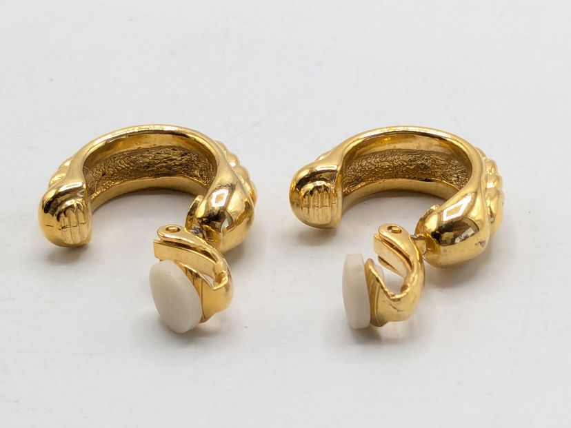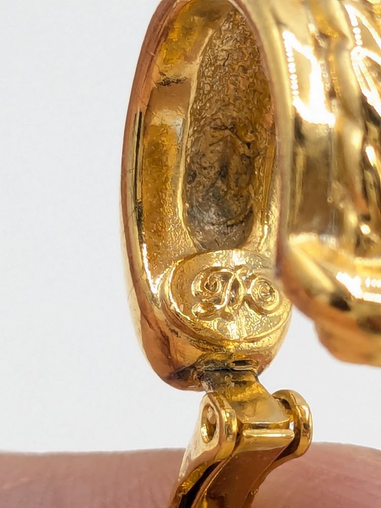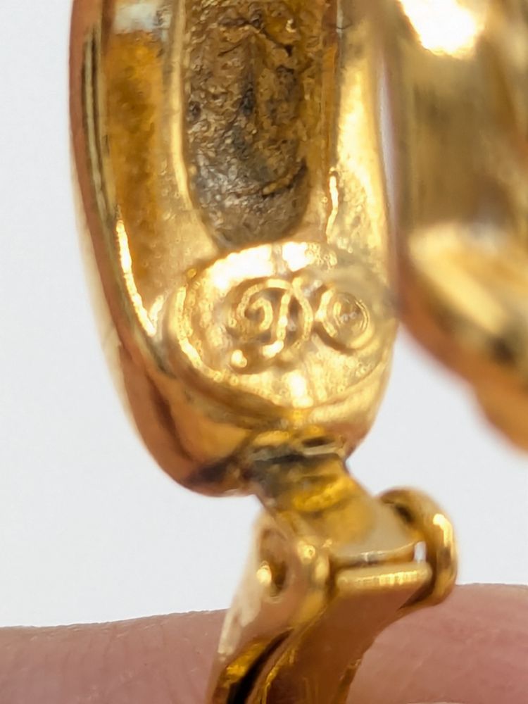 Good condition. Gold tone is bright and shiny with no color loss. Signed with a cursive D. Measures 3/4" in length and 1/4" wide. EN3