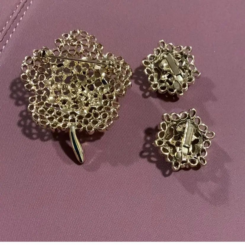 Brooch measures 2’ and earrings measure 1’ — Not signed