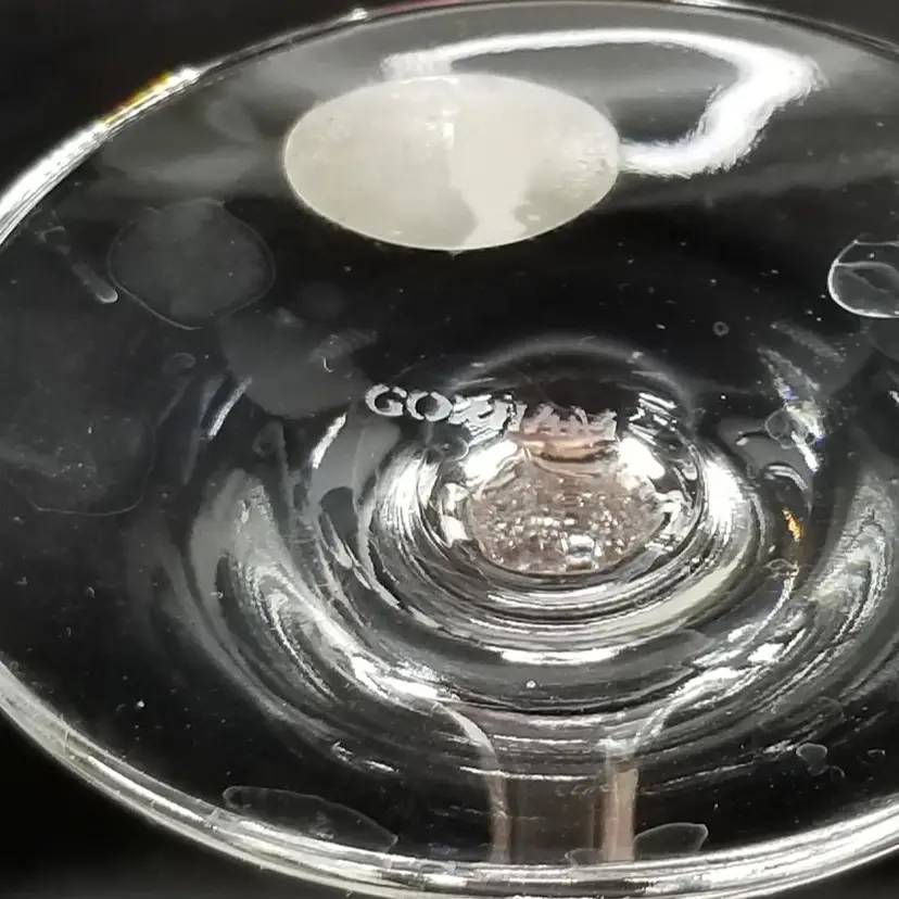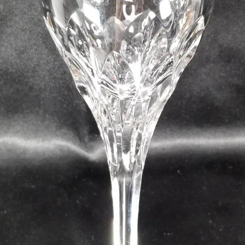 Vintage Gorham Crystal Diamond Gold Wine Glasses are 6 5/8" tall. These were made between 1991 and 2004 and are discontinued. These are full lead crystal with a design that flows from the bottom of the bowl to the top of the stem and gold trim. Made in Germany with stickers intact and the Gorham mark etched on the bottom of each glass. This is a set 2. No chips, cracks or repairs. Please view the pictures and feel free to ask questions.