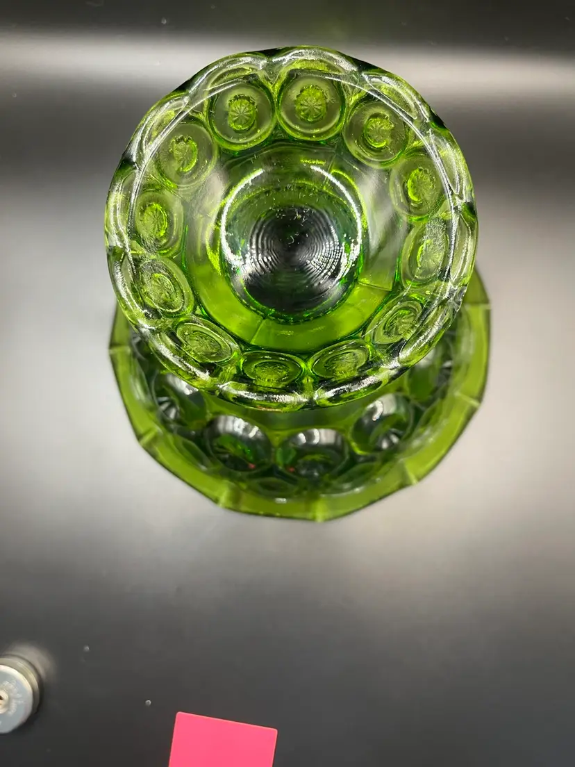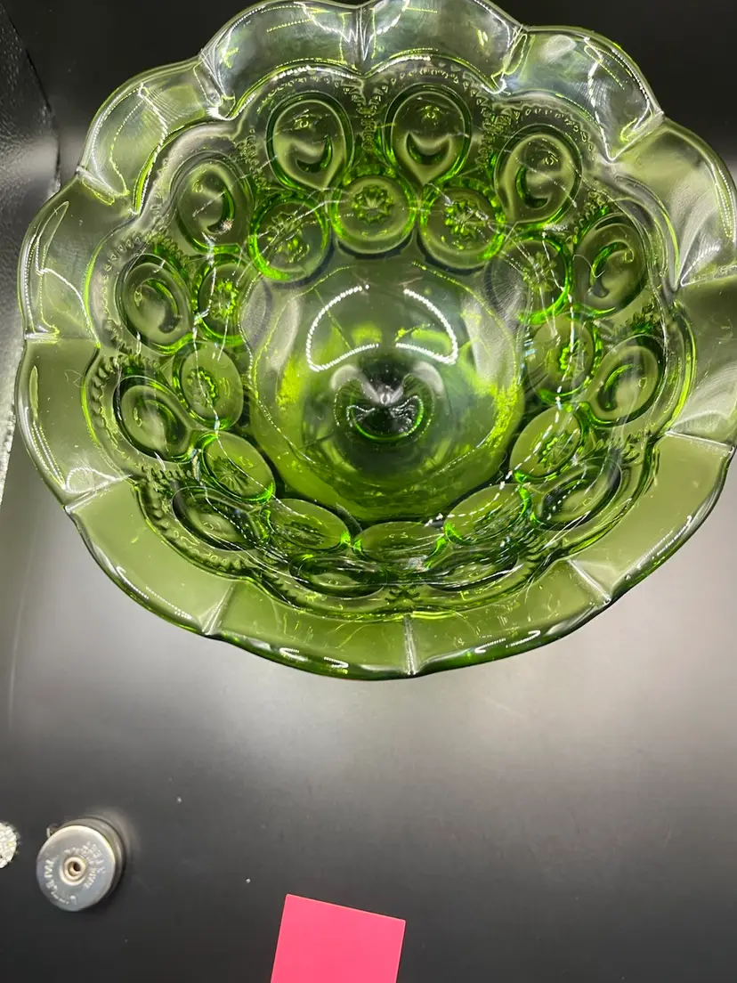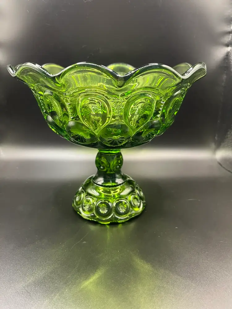 7” tall 8” wide gorgeous green moon and stars compote. No chips or cracks.
