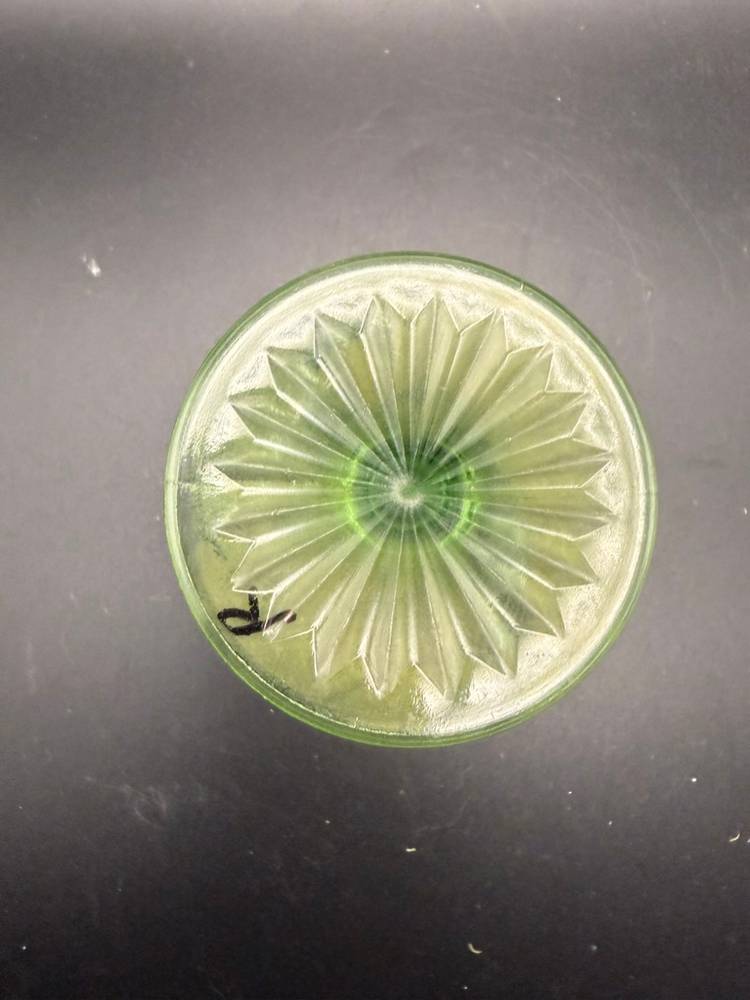 Uranium glass, often referred to as Vaseline glass due to its characteristic yellow-green hue and tendency to glow under ultraviolet light, contains a small amount of uranium oxide. This addition not only gives the glass its unique color but also causes it to fluoresce brightly. While the uranium content is minimal and considered safe, its presence makes these pieces highly collectible and sought after by enthusiasts.