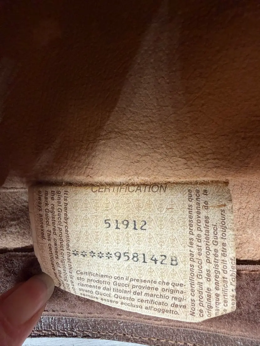 Includes original Gucci certification/authenticity cards, which is a rare and valuable bonus for vintage collectors.
