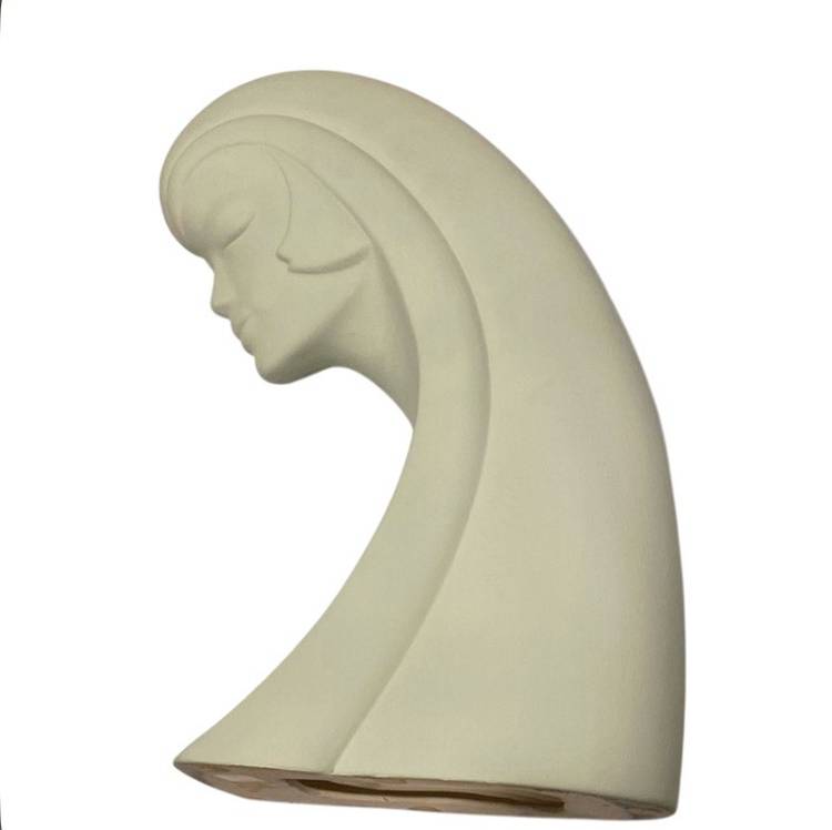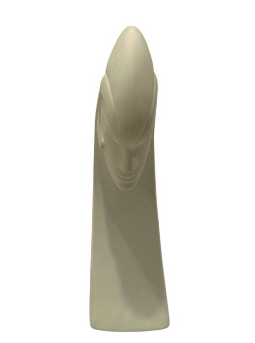 The Vintage Haeger Ceramic Virgin Mary Head Sculpture is a large 19 1/2" tall bust statue made in the United States in 1985. This Art Deco style sculpture is crafted from white ceramic and has been painted a light mint green, showcasing intricate details and a classic design. With a weight of 5 lbs and 13 oz, this collectible item serves as a beautiful and timeless decorative piece for any space. No chips! See pictures for beauty. Message with any questions!