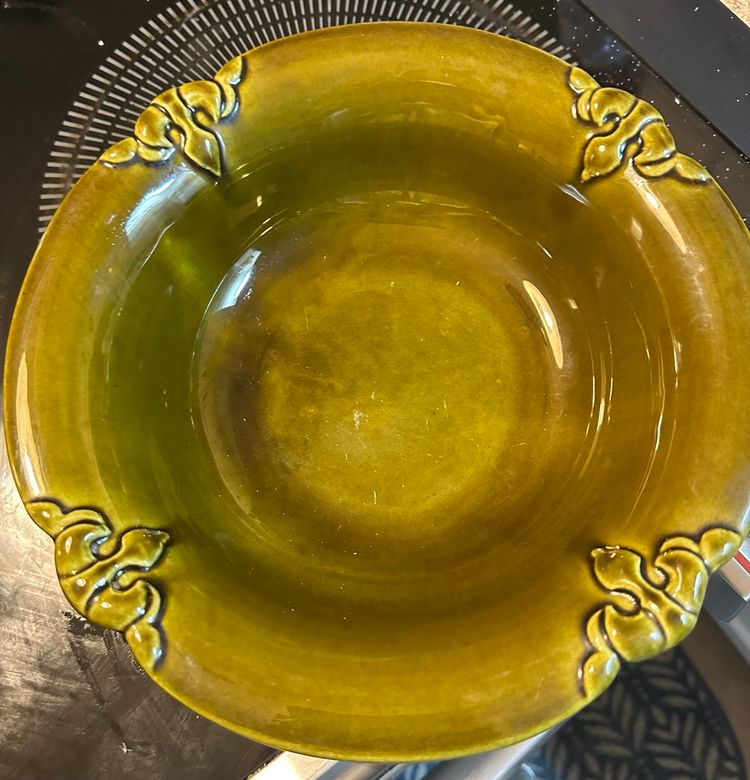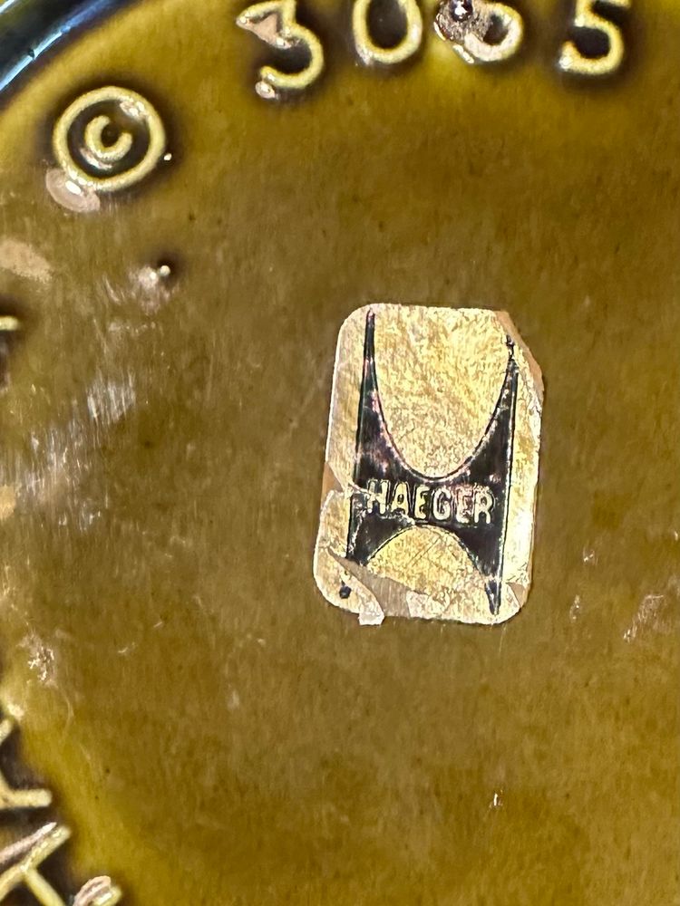 The Vintage HAEGER Green Numbered Bowl 3055 is a collectible piece of pottery that exudes charm and nostalgia. With its distinctive green color and vintage pattern, this bowl is sure to add a touch of retro flair to any space. The numbered design adds a unique element to the piece, making it a standout decorative item for collectors or lovers of classic craftsmanship.