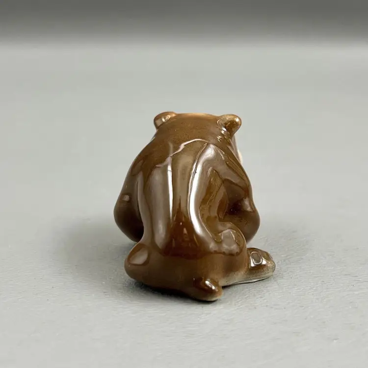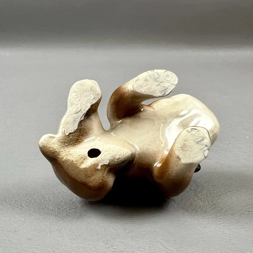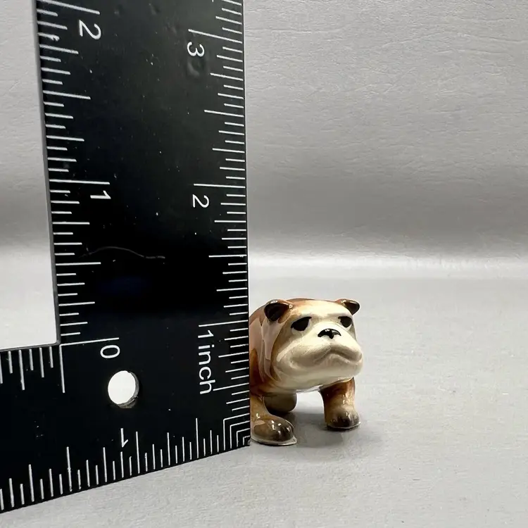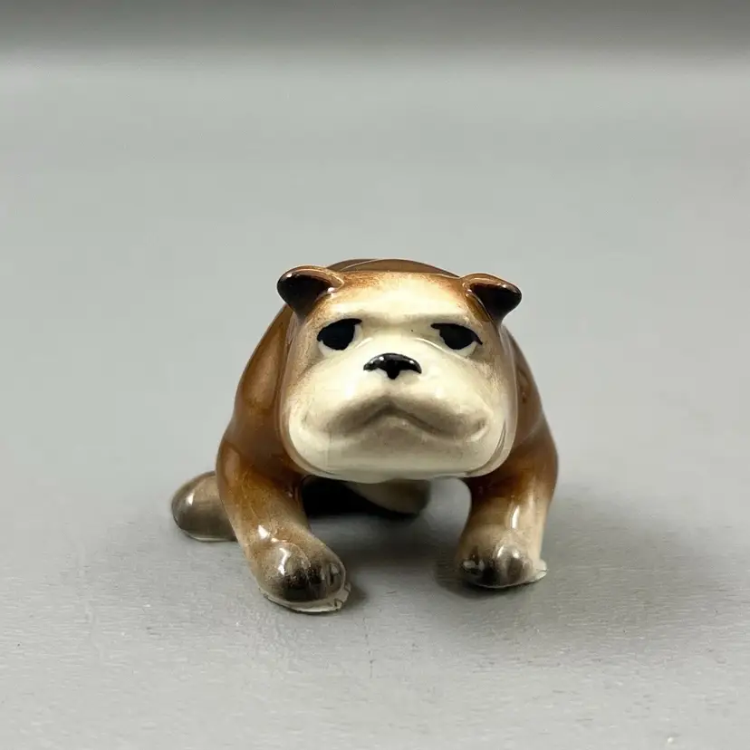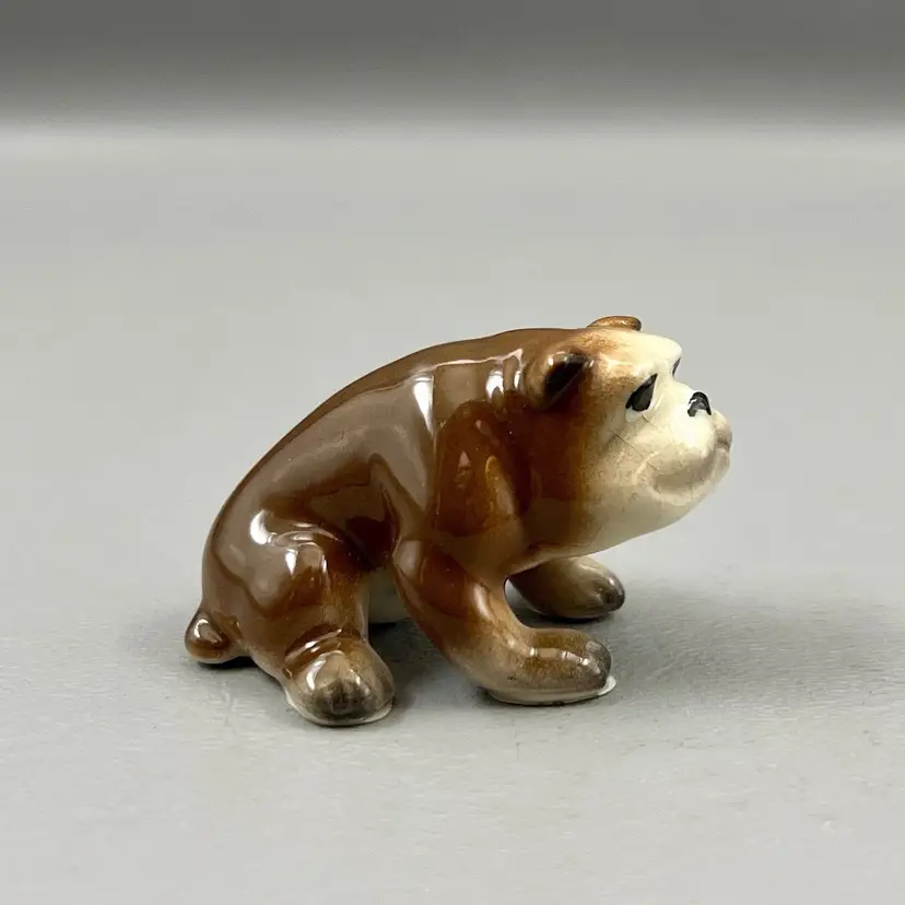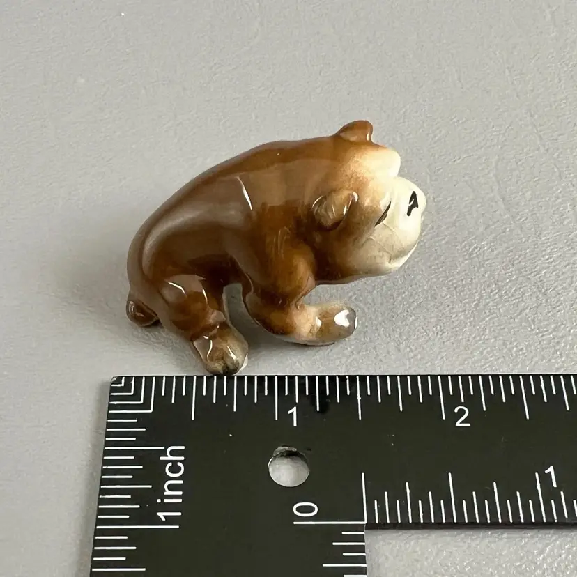 Vintage Hagen Renaker Brown Sitting Bulldog Ceramic Figurine Miniature 1"