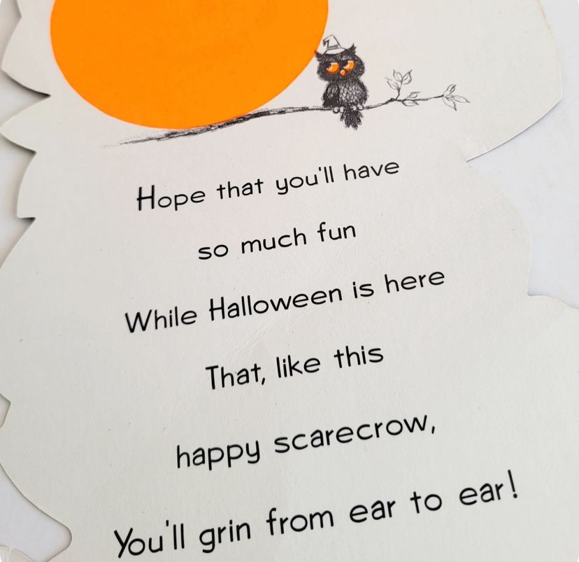 Vintage Hallmark Halloween oversized flocked tent greeting card. Not used. Tab on the bottom so it can stand. Measures 11 in x 5.5 in. Will ship flat between cardboard.