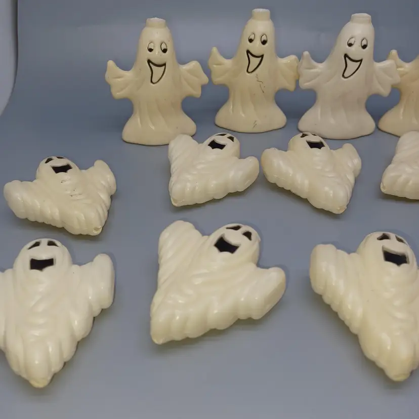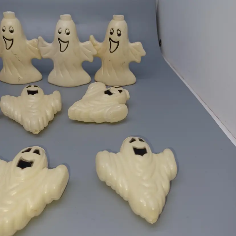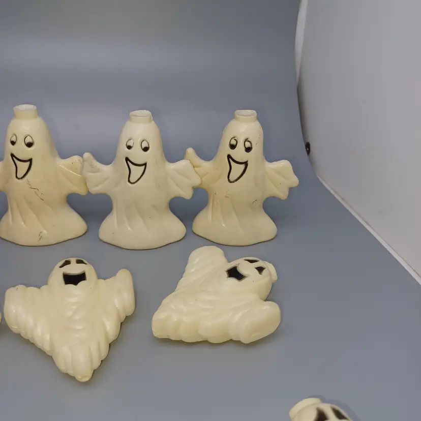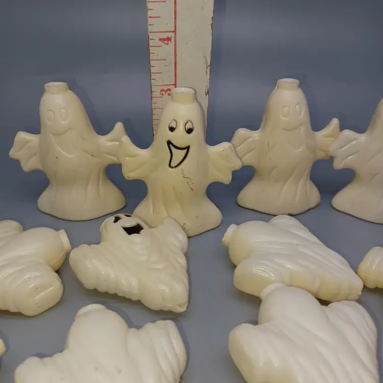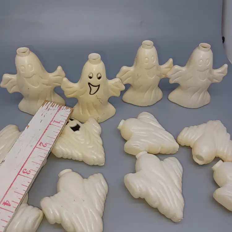 Vintage Halloween Ghost Blow Mold String Light Covers (12) Cover should fit all standard light strings In good vintage condition with slight yellowing But nothing that detracts from use or display. Please see all pictures as these are the best description of this vintage item. All items from a smoke-free home with pets experienced shipper