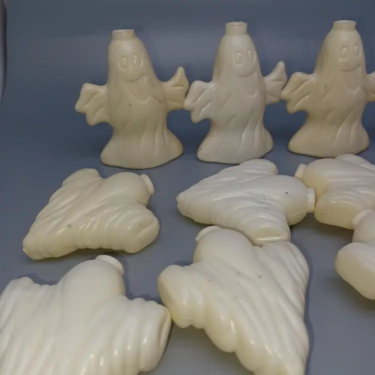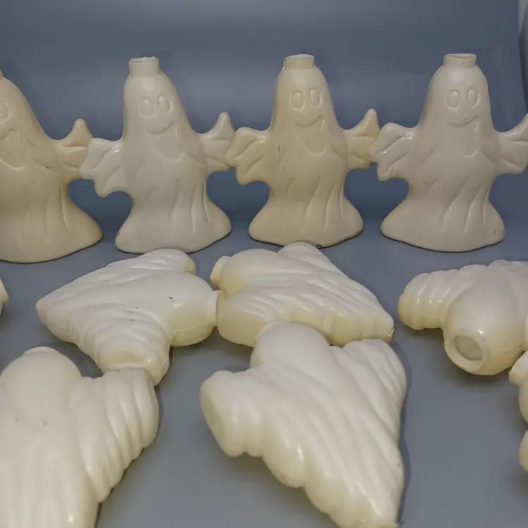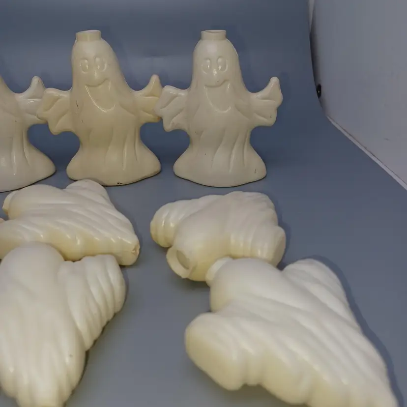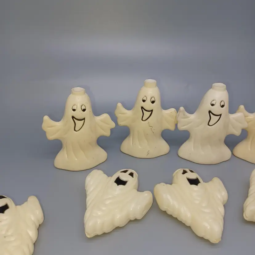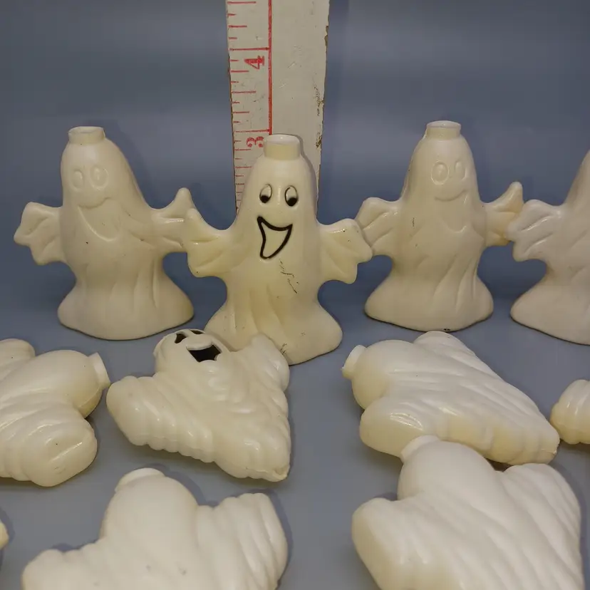 Vintage Halloween Ghost Blow Mold String Light Covers (12) Cover should fit all standard light strings In good vintage condition with slight yellowing But nothing that detracts from use or display. Please see all pictures as these are the best description of this vintage item. All items from a smoke-free home with pets experienced shipper