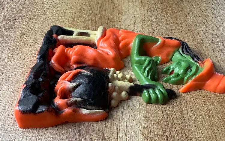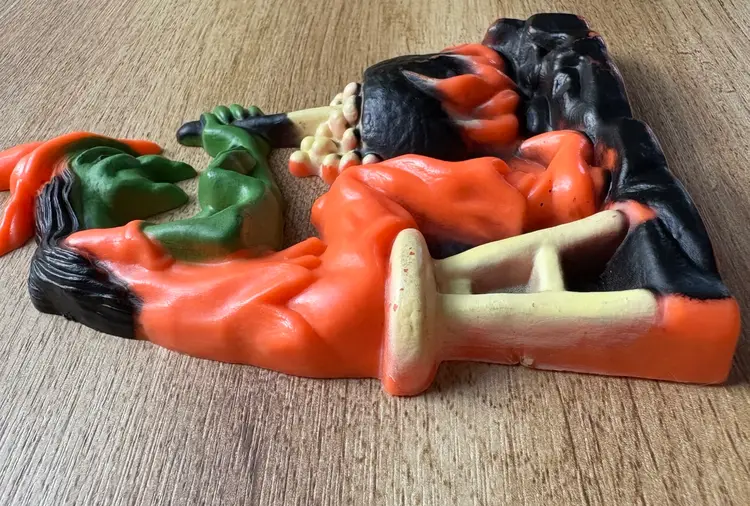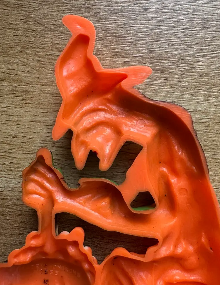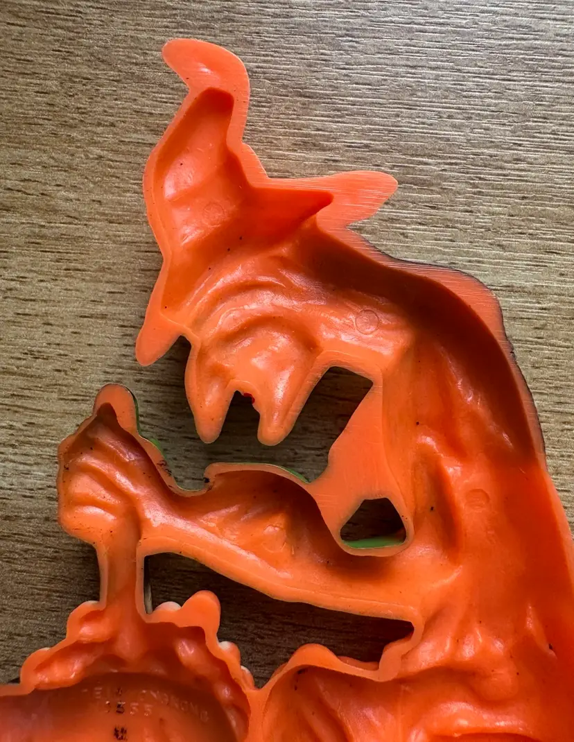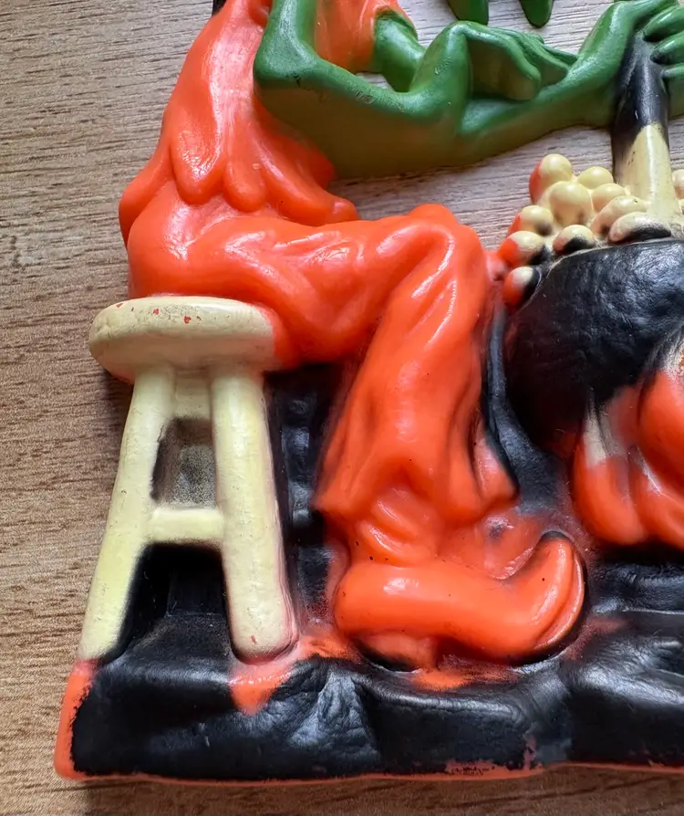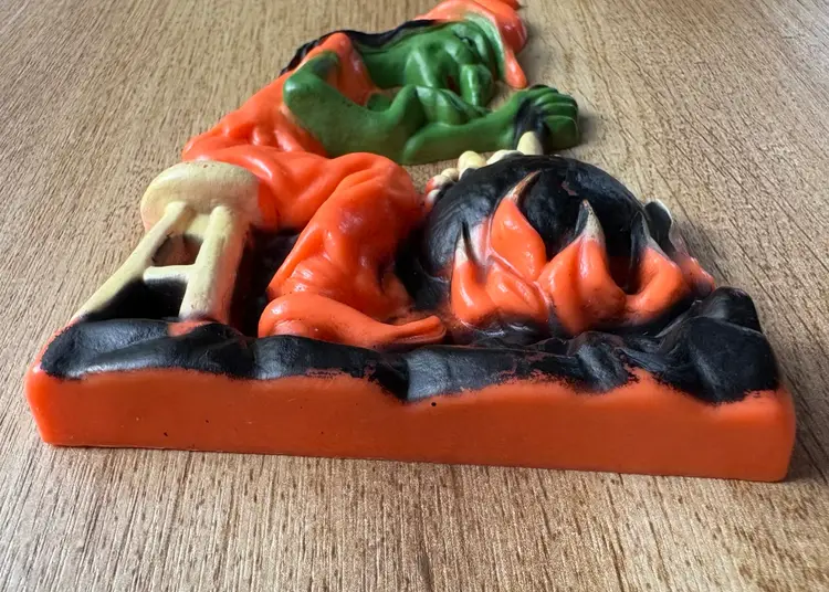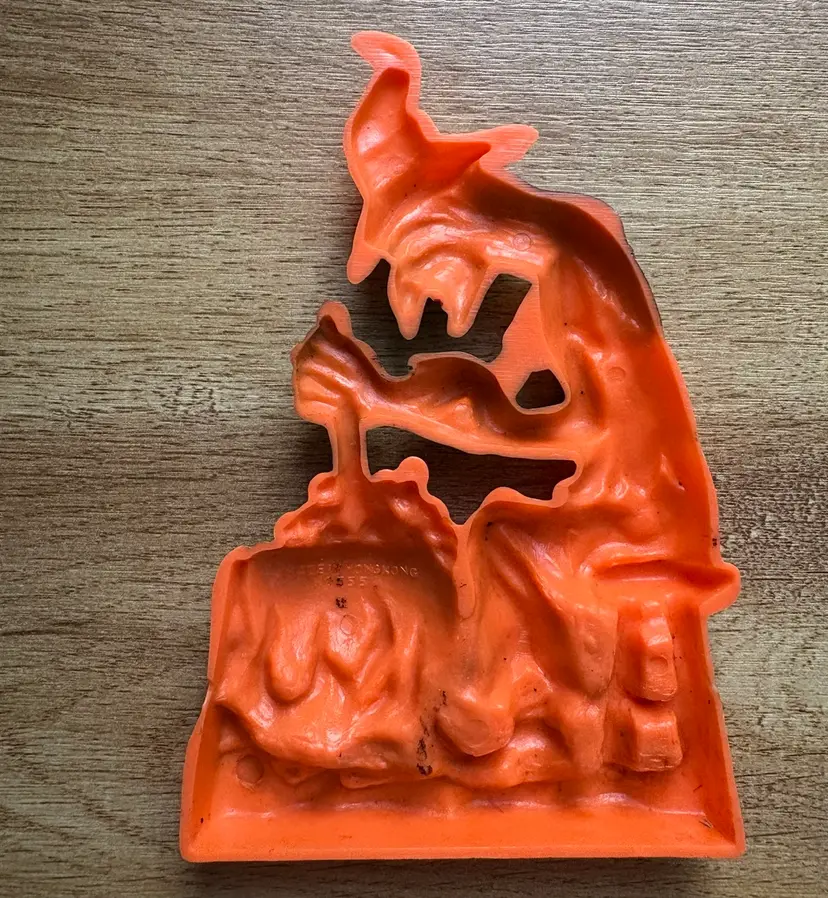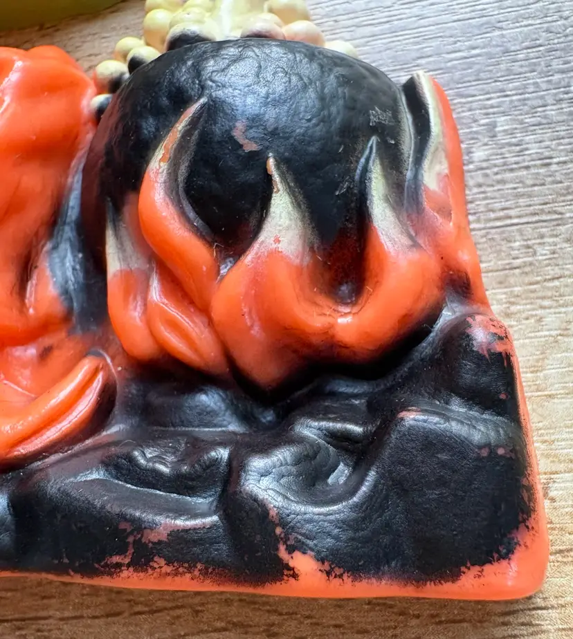 Good condition with slight paint wear. Each side has a notch or groove 1” from the bottom, likely from a support to hold the topper upright. 5 3/8”H x 3 5/8”W Made in Hong Kong. Harder to find topper.