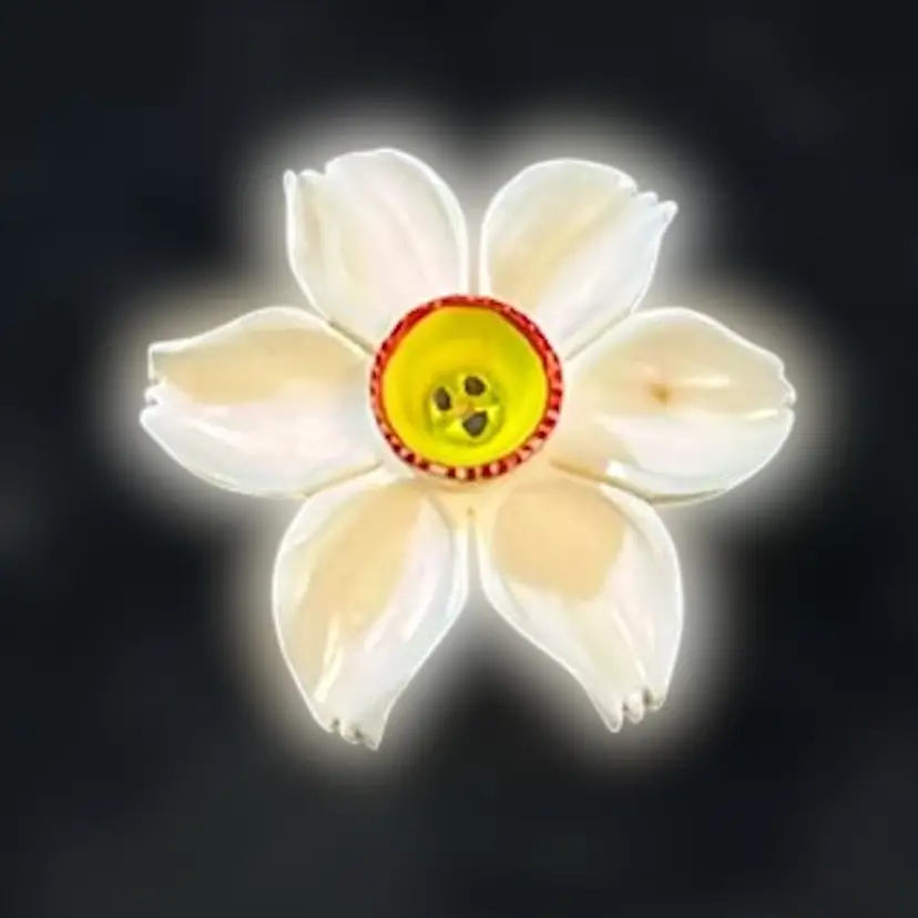 Vintage Hand Carved Bone Daffodil Brooch Pin