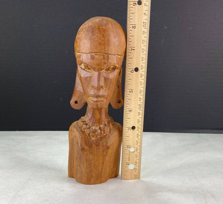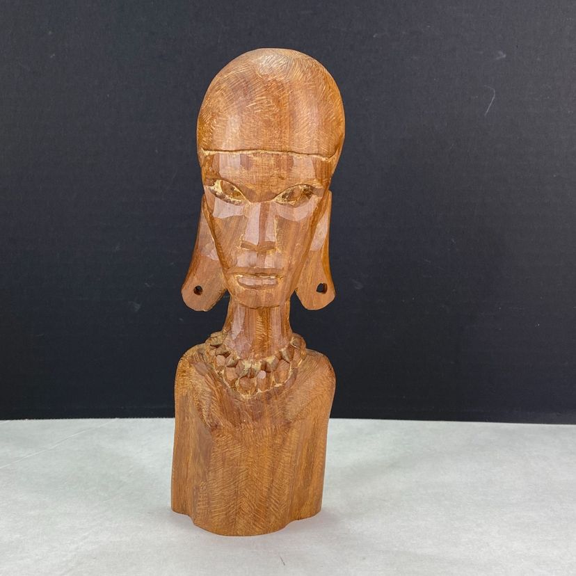 Vintage 60's Hand Carved Wood African Art Head Sculpture Tanzania 1967
