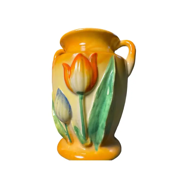 Beautiful vintage vase from Trico Nagoya, Japan, features a stunning hand-painted raised floral tulip pattern on porcelain/ceramic.
