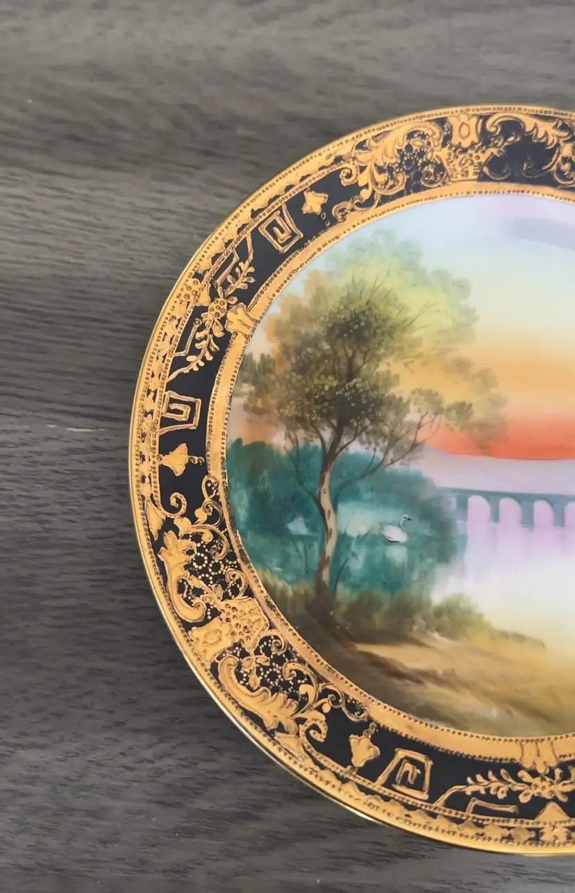 This vintage hand-painted Nippon enamel and moriage plate originates from Japan, showcasing intricate porcelain craftsmanship that reflects the traditional Japanese aesthetics. With a diameter of 6.5 inches, this antique original piece captures the beauty and elegance of Asian antiques. The intricate hand-painted designs and unique moriage technique make this plate a beautiful and timeless addition to any collection of vintage ceramics. Please note that the right side border of the plate is a bit faded compared to the left side as seen in photos.