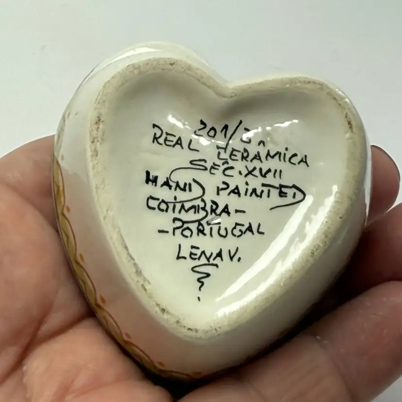 Handmade in Portugal. 1.5" tall x 2.5" x 2.25". No chips, no cracks. Light wear.