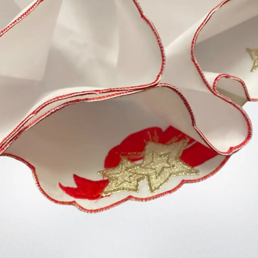 Beautiful embroidery on each. Looks to be made of cotton . Great vintage condition !