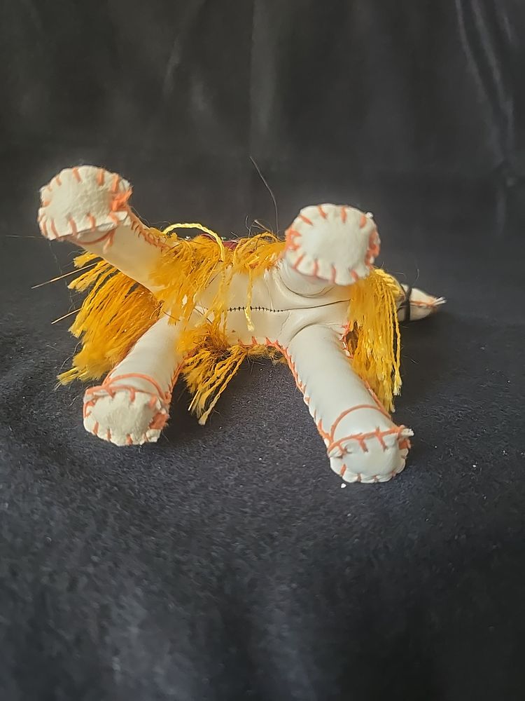 Handmade with stitched seams and painted facial details