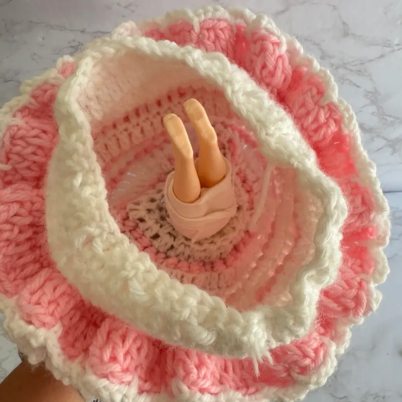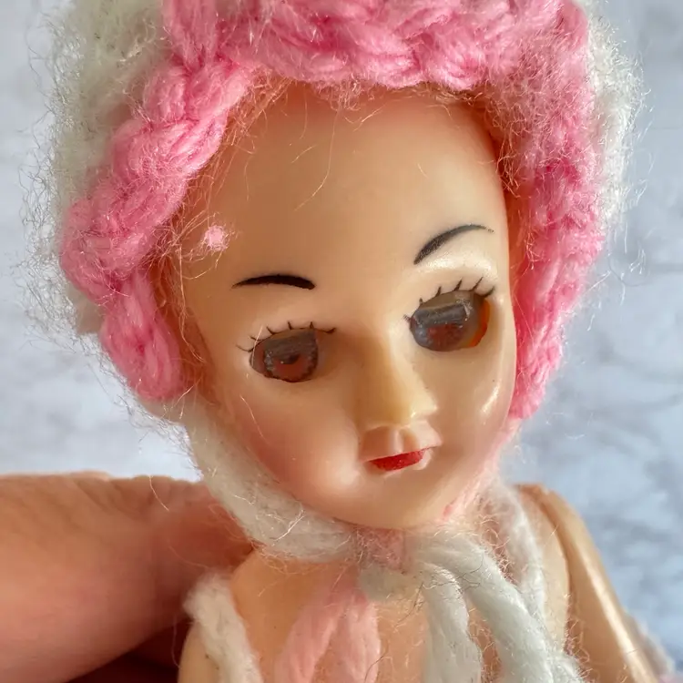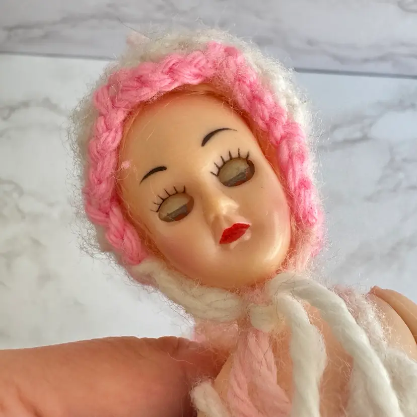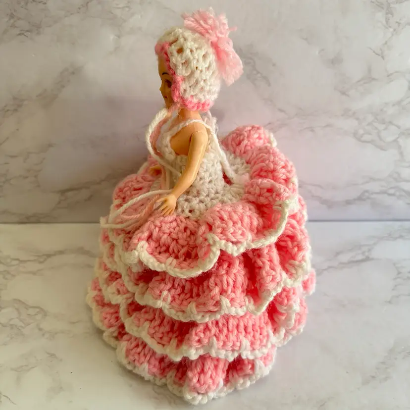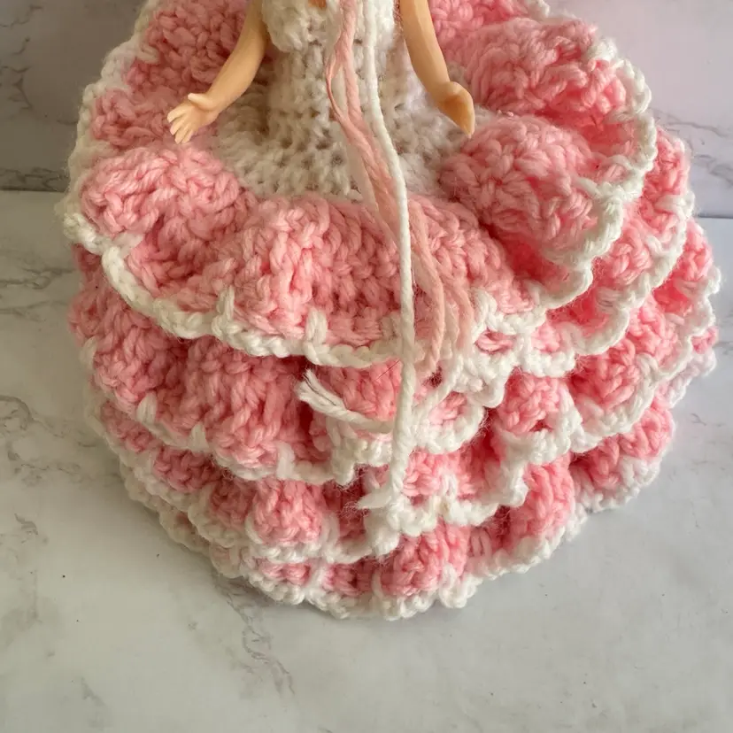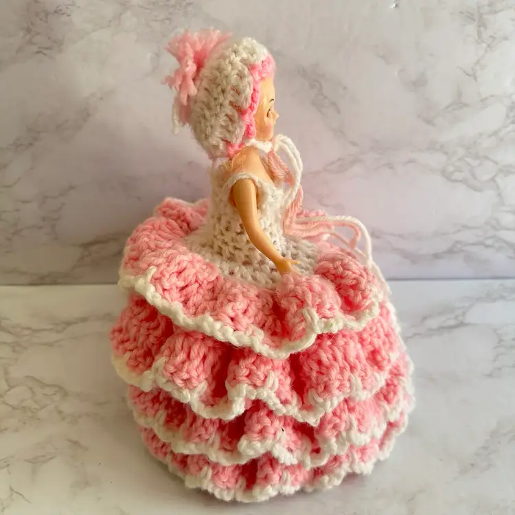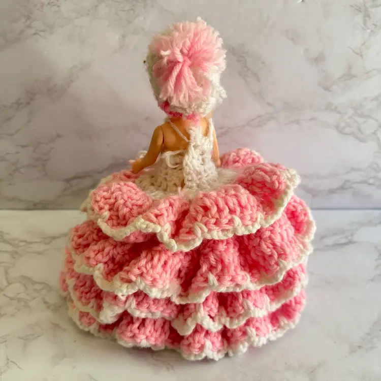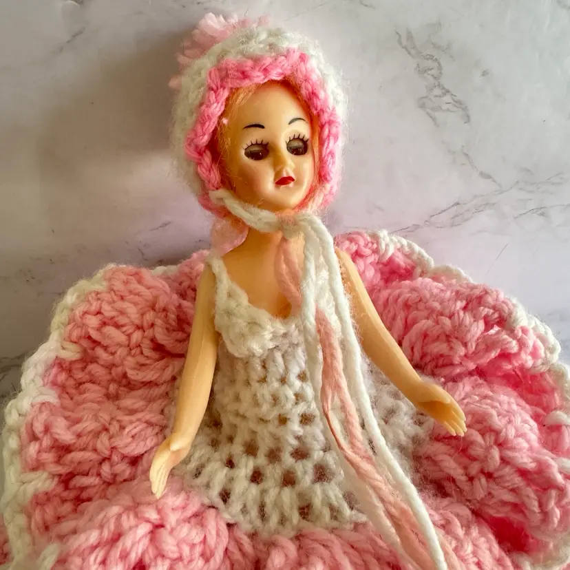 Vintage Handmade Crochet Sleepy Eyes Doll Toilet Paper Roll Cover